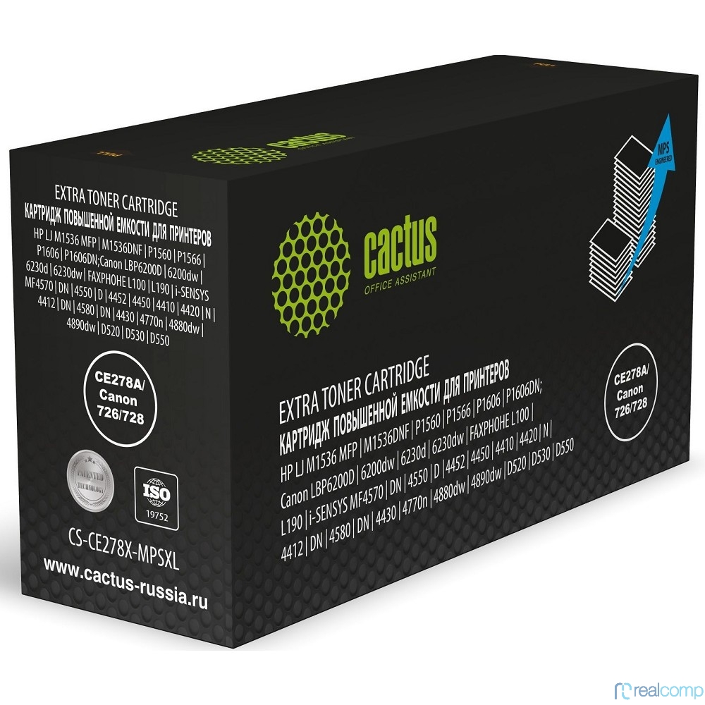 Картридж лазерный Cactus CS-CE278X-MPSXL CE278A/Canon 726/728 черный (8000стр.) для HP LJ M1536 MFP/M1536DNF/P1560/P1566/P1606/P1606DN;Canon LBP6200D/6200dw/6230d/6230dw/FAXPHOHE L100/L190/i-SENSYS MF