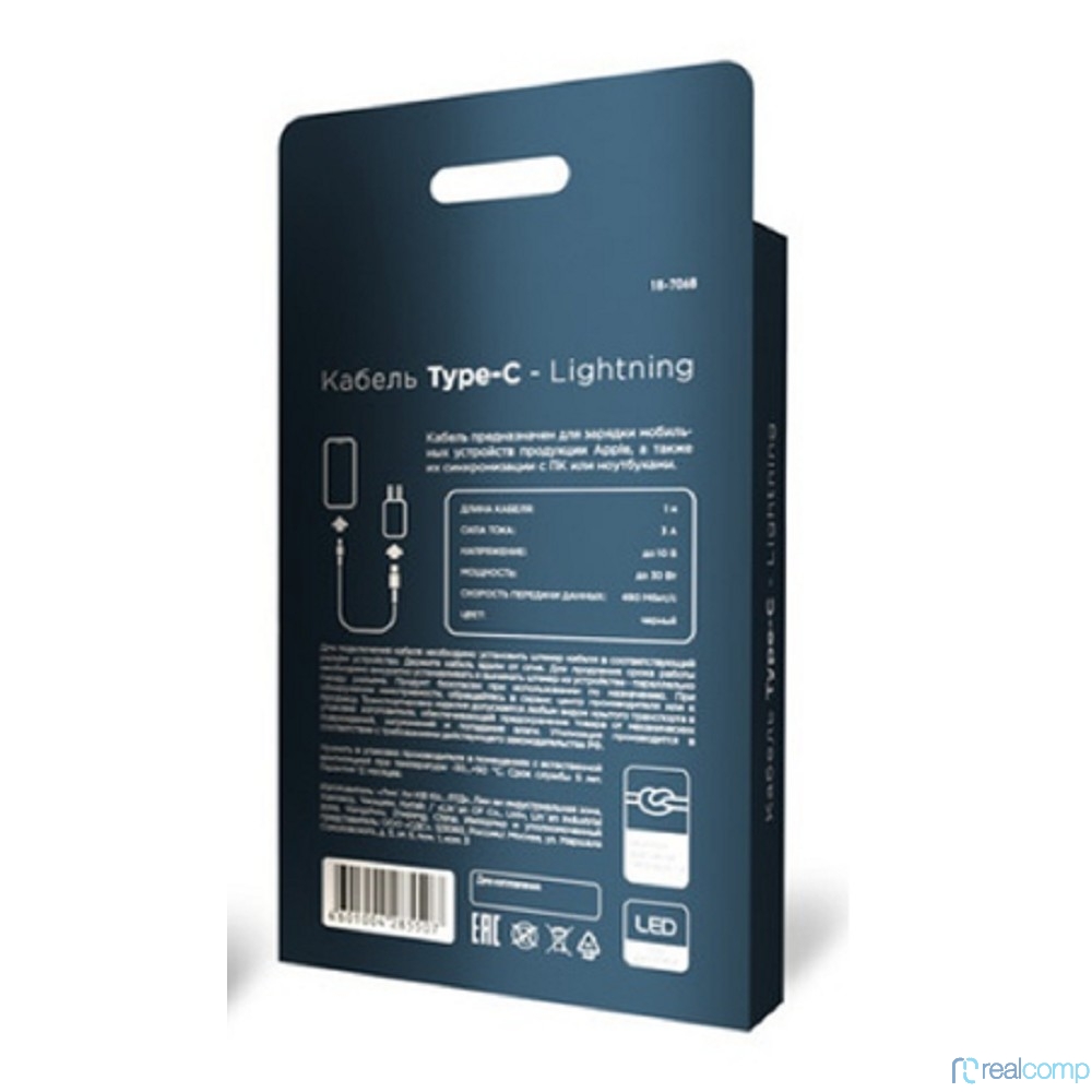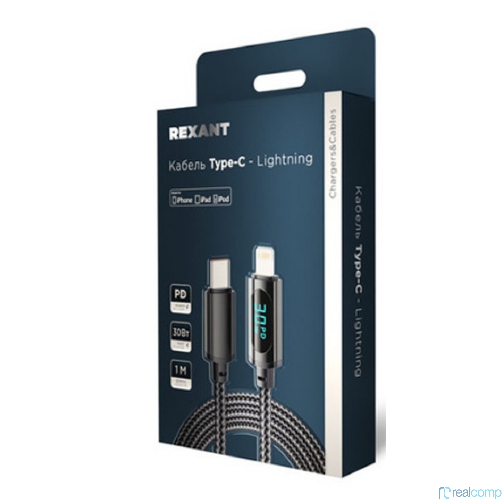 Rexant (18-7068) Кабель Type-C – Lightning для Apple, 3А, 1м, в черной нейлоновойоплетке, с LED дисплеем
