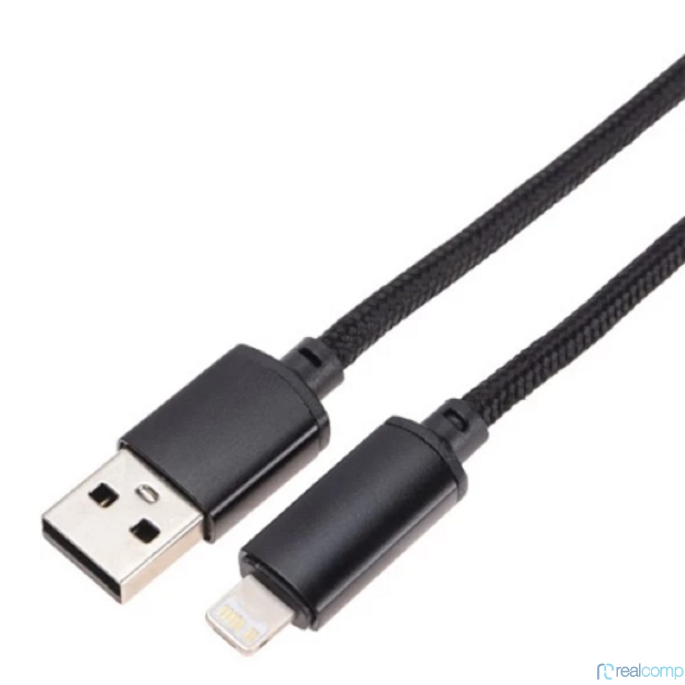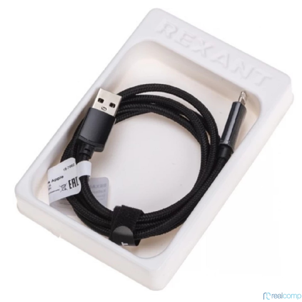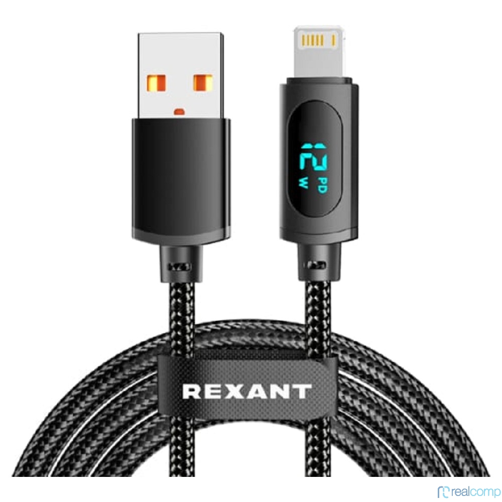 Rexant (18-7062) Кабель USB-A – Lightning для Apple, 2,4А, 1м, в черной нейлоновой оплетке, c LED дисплеем