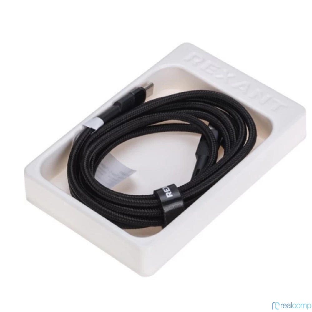Rexant (18-7071) Кабель Type-C – Type-C, 3A, 60Вт, 1м, в черной нейлоновой оплетке