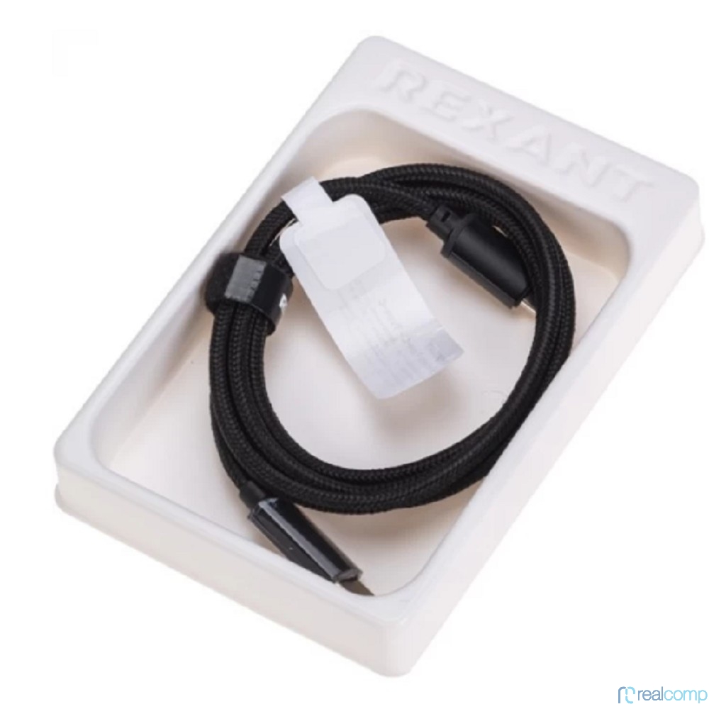 Rexant (18-7074) Кабель Type-C – Type-С, 5A, 100Вт, 1м, в черной нейлоновой оплетке, с LED дисплеем