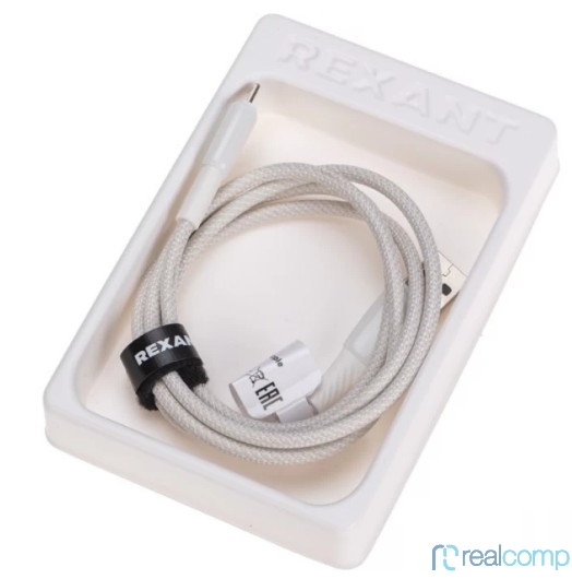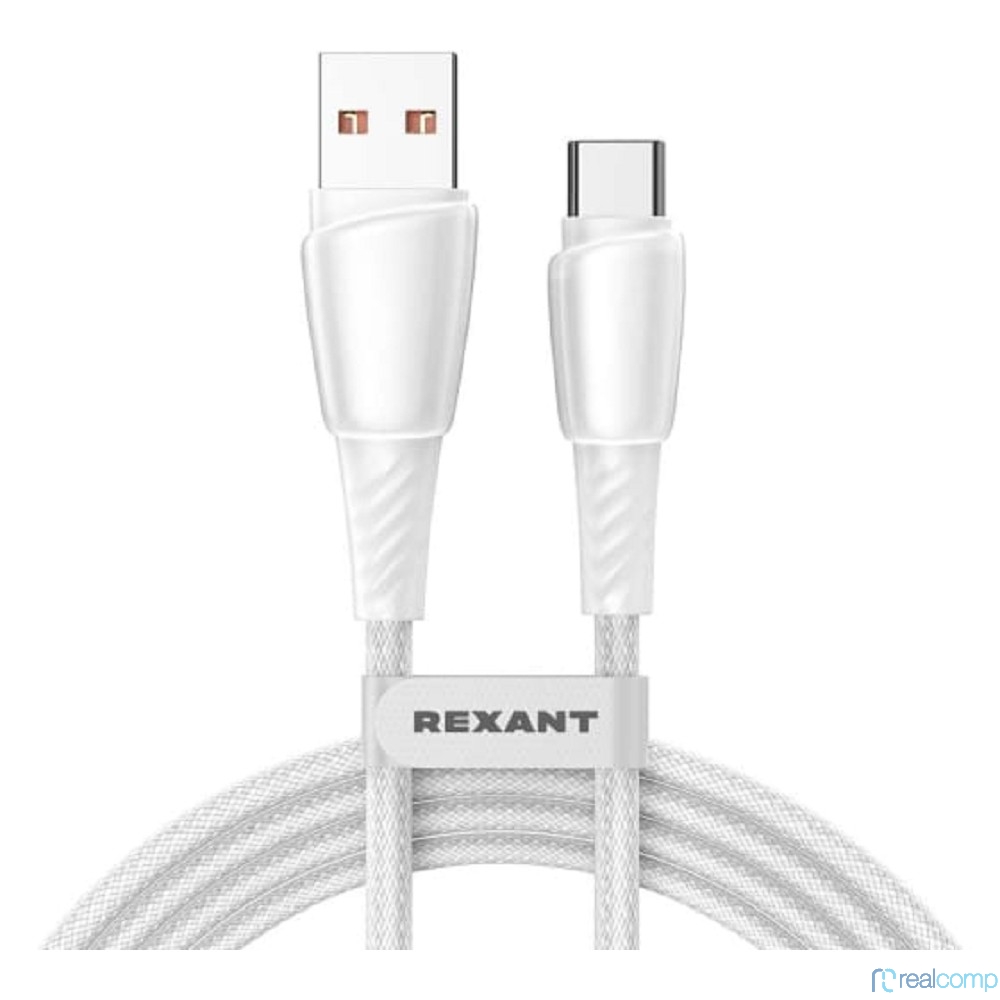 Rexant (18-7067) Кабель USB-A – Type-C, 5А, 100Вт, 1м, в белой нейлоновой оплетке