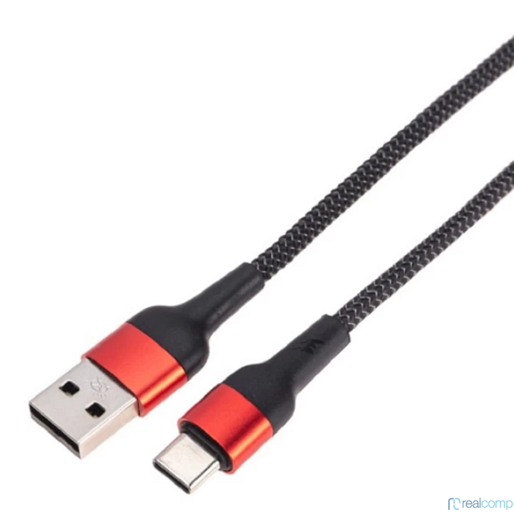 Rexant (18-7066) Кабель USB-A – Type-C, 5А, 50Вт, 1м, в черной нейлоновой оплетке