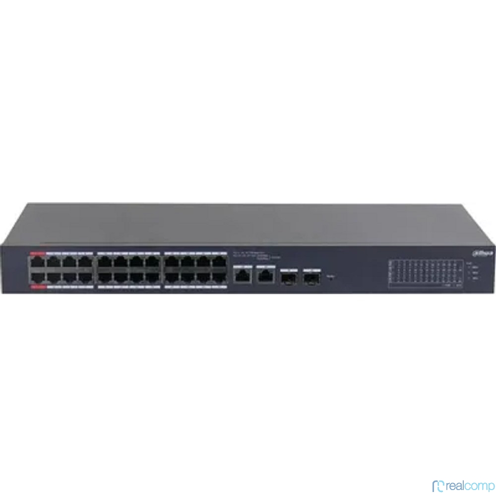 DAHUA DH-CS4226-24ET-240 24-портовый облачный управляемый коммутатор с PoE, 24xRJ45 100Mb, 2хКомбо SFP/RJ45 1Gb, суммарно 240Вт, коммутация 8.8 Гбит/с, MAC-таблица 8К