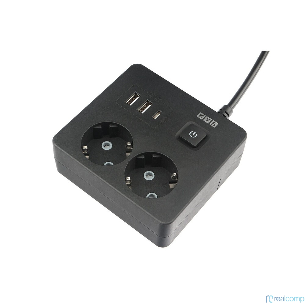 PowerCube Бытовой удлинитель (PC-1B-2M) 2р с/з вык.,3USB, 3500 Вт, 16А, 1.9 м, 3*1,0 (черный) квадрат {22308}