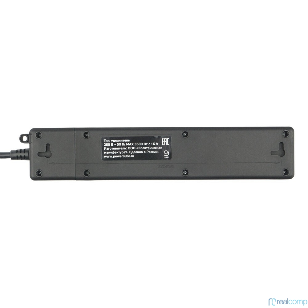 PowerCube Бытовой удлинитель (PC-6B-2M) 3р с/з вык.,3USB, 3500 Вт, 16А, 1.9 м, 3*1,0 (черный) {22310}