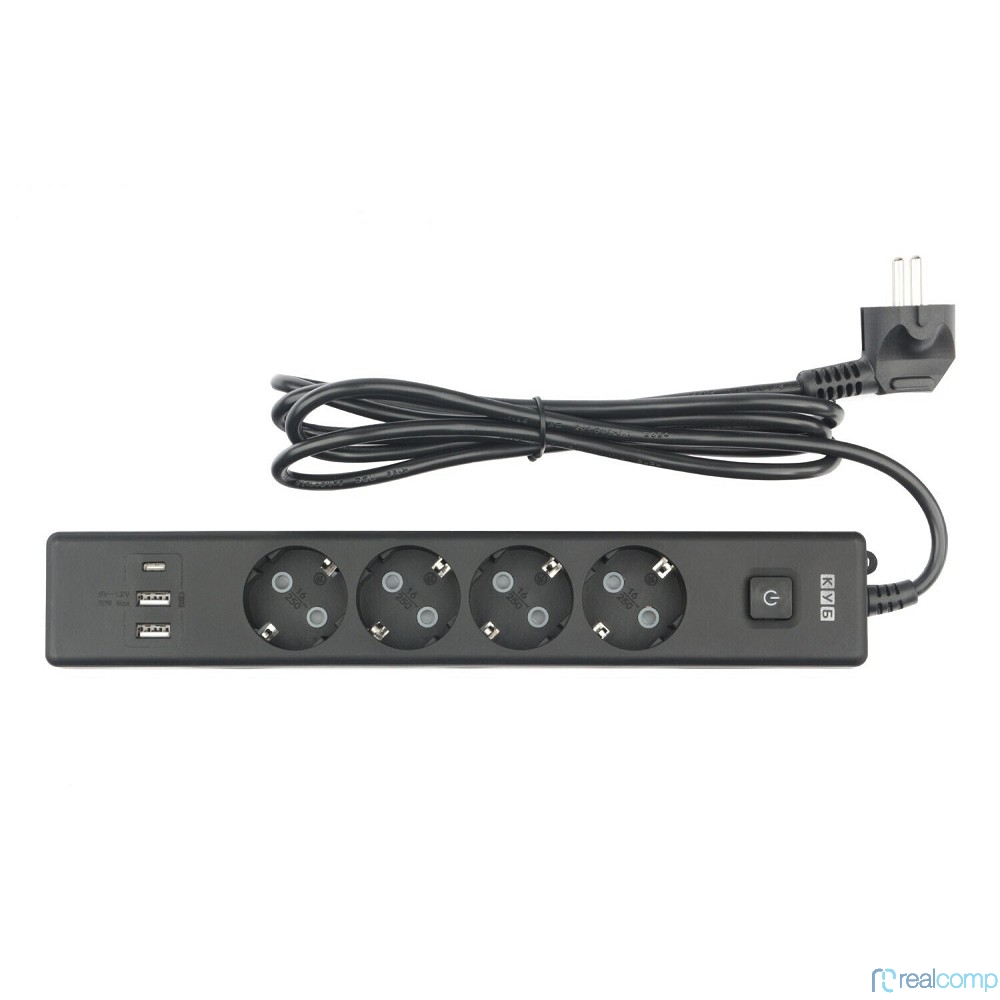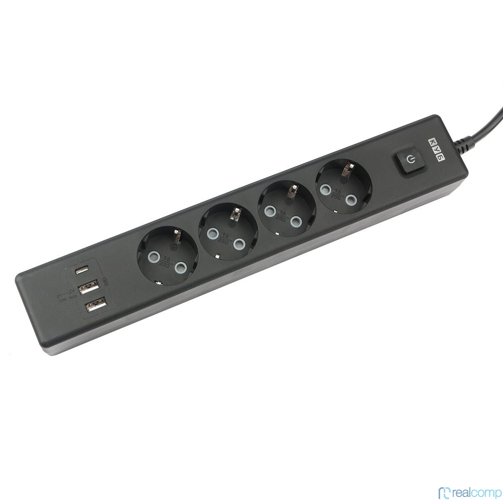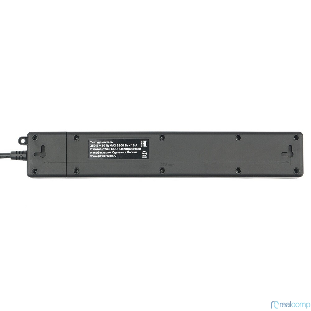 PowerCube Бытовой удлинитель (PC-7B-2M) 4р с/з вык.,3USB, 3500 Вт, 16А, 1.9 м, 3*1,0 (черный) {22313}