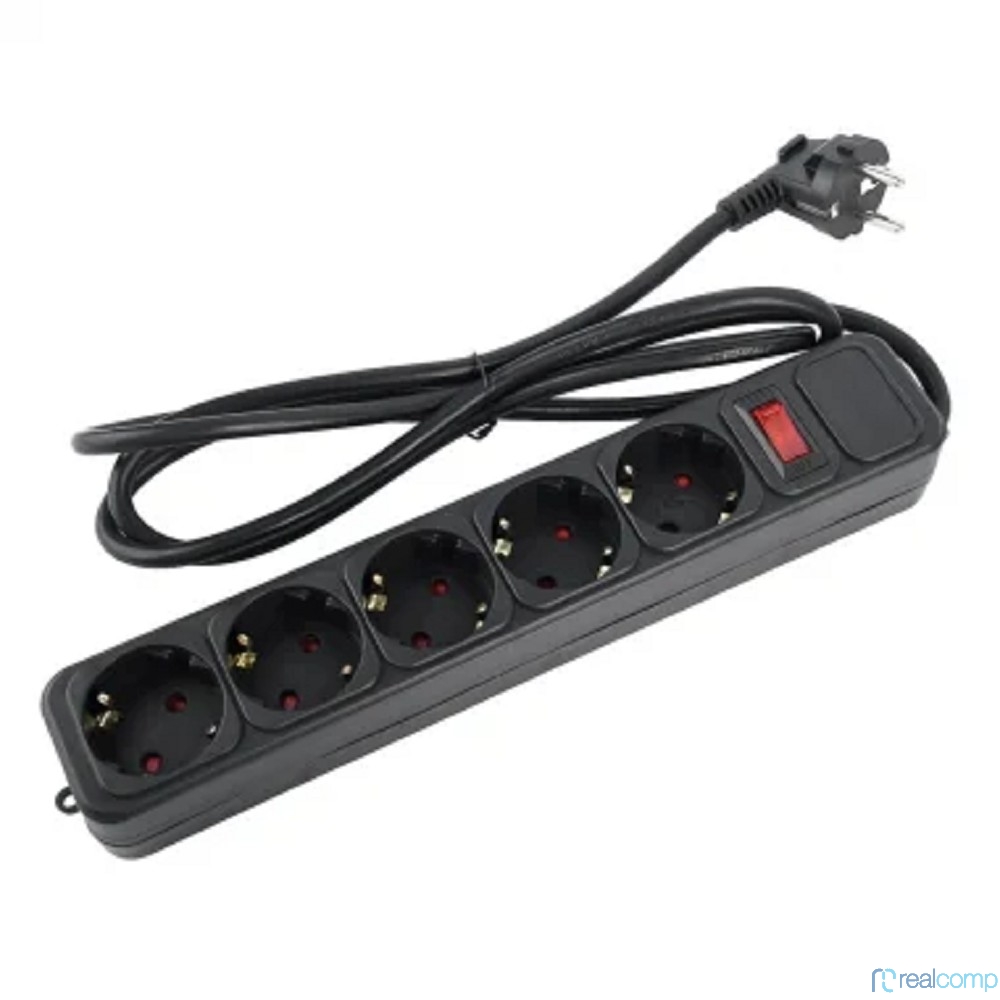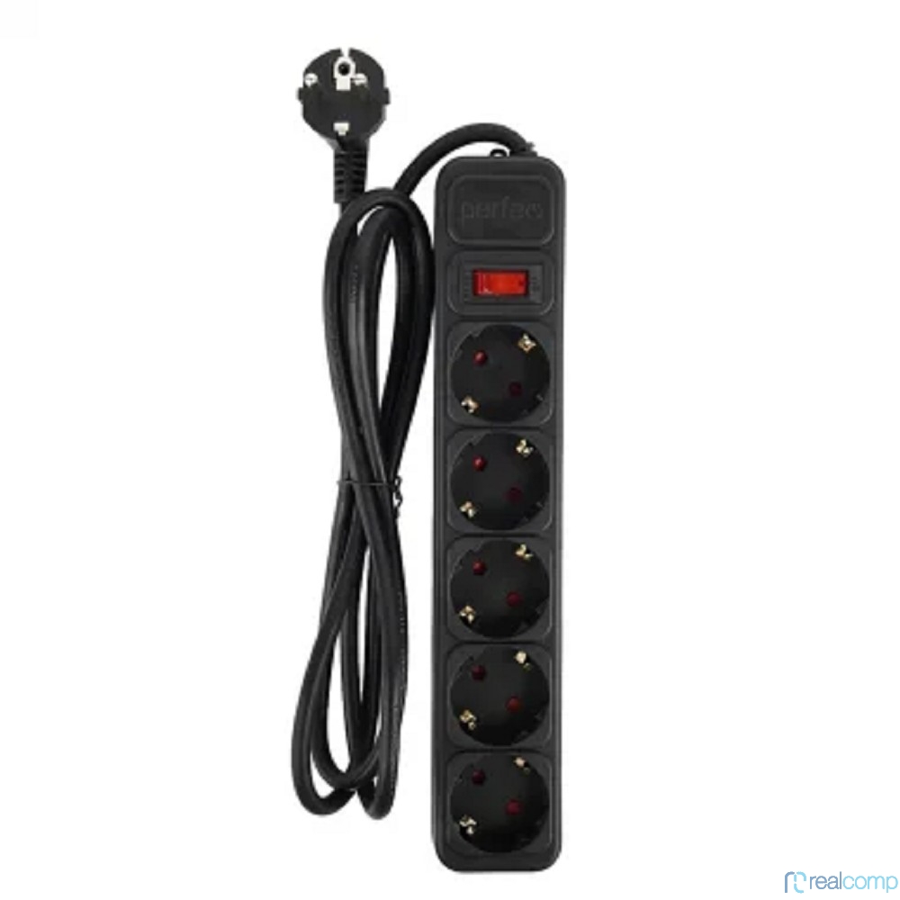 Perfeo сетевой фильтр "REAL POWER", 1,8м, 5 розеток, 16А, 3500 Вт, тройная защита, черный. [PF_E1499]