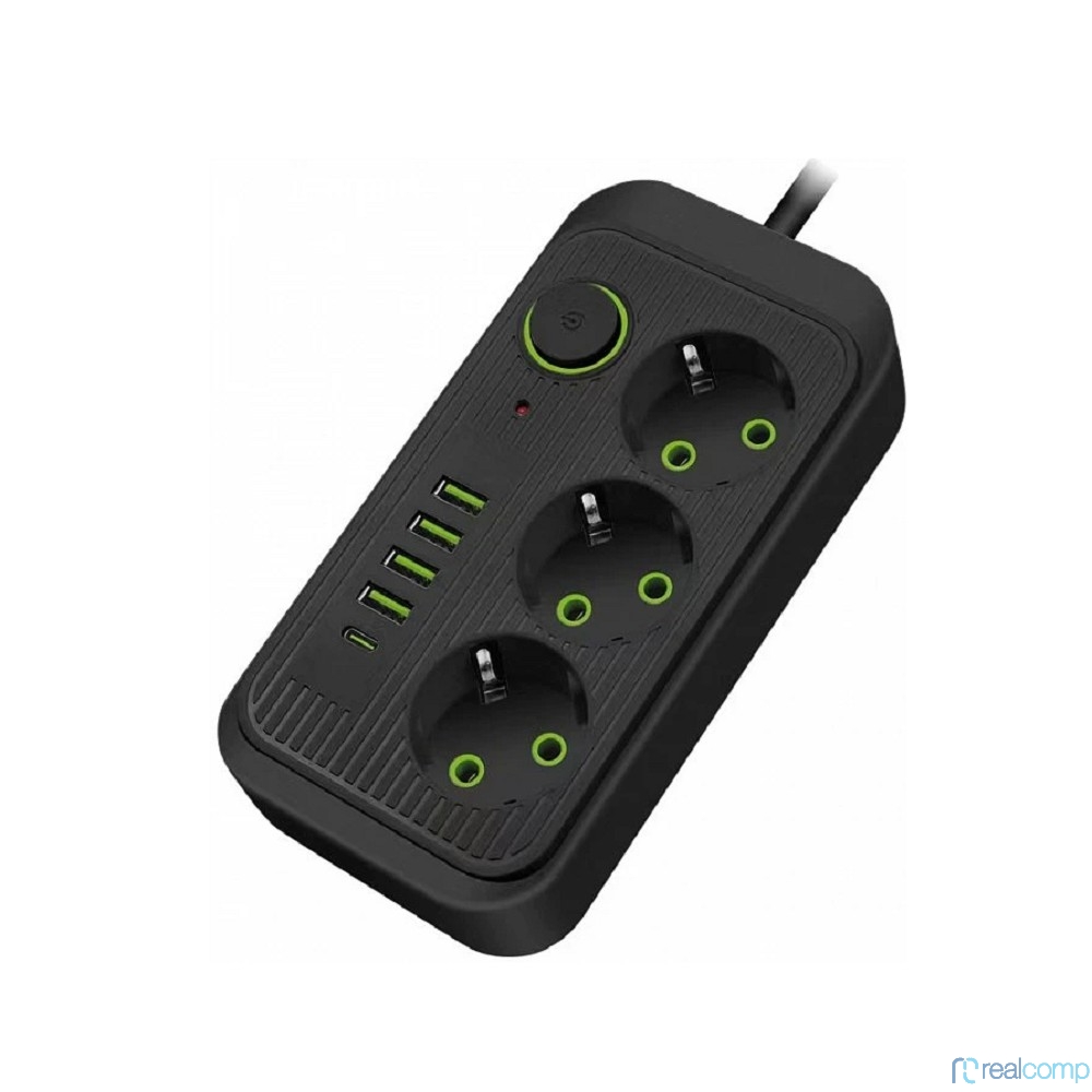 Amper сетевой удлинитель,4,0м, 3 розетки, 3*0,75мм, 10А, 2500 Вт, 4usb, 1Type-C, черный. [JH-1074U-4B]