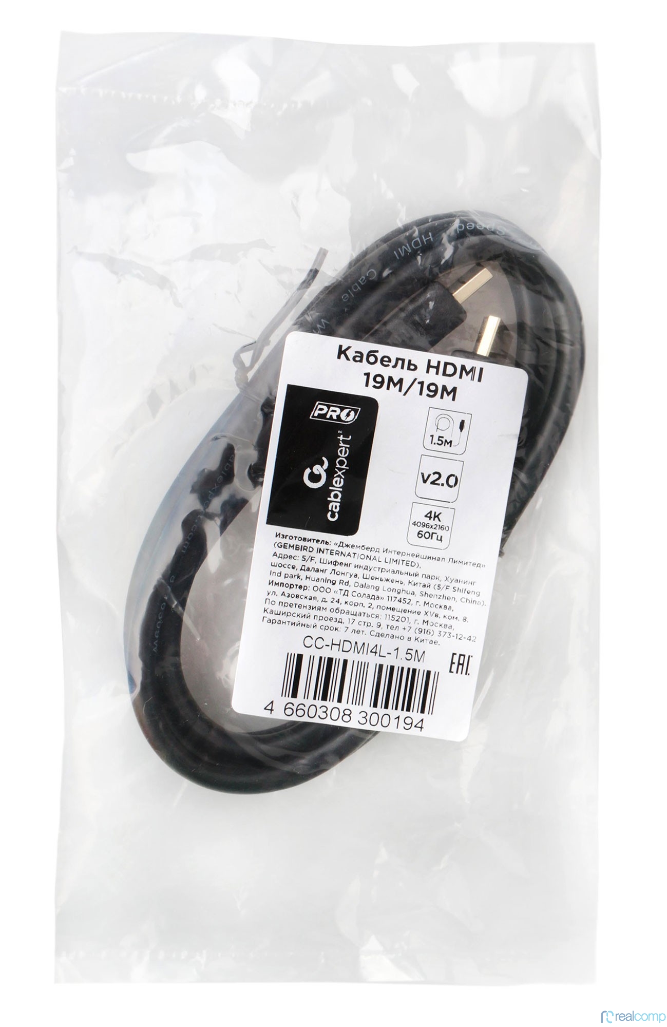 Кабель HDMI Cablexpert 19M/19M, v2.0, серия Light, позол.контакты, экран, 1.5м, черный, пакет (CC-HDMI4L-1.5M)