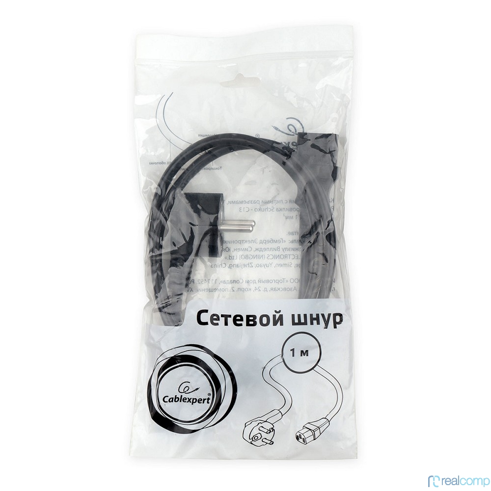 Кабель питания Cablexpert Schuko-C13, 3х1.0мм2, 16А, с заземлением, 1м, черный, пакет (PC-186-1-1M)