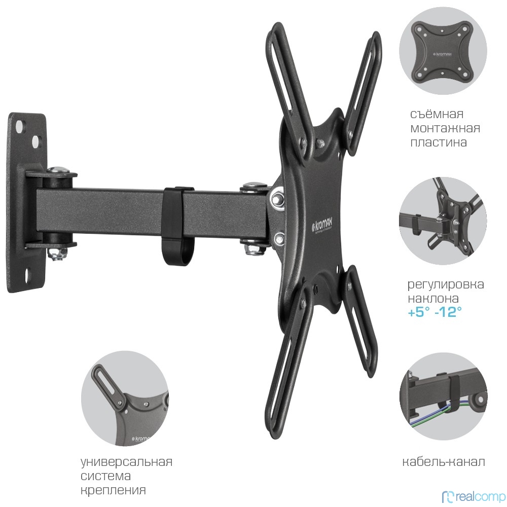 Kromax CORBEL-4 черный 15"-42" макс.25кг настенный поворот и наклон