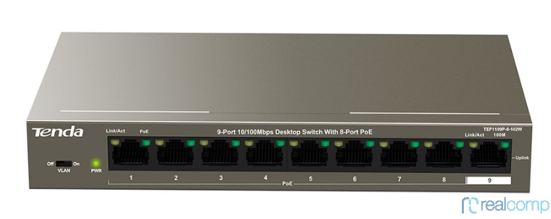 TENDA TEF1109P-8-102W Коммутатор настольный 9-Ports 10/100 Base-TX 8-Ports PoE(PoE бюджет 92W)