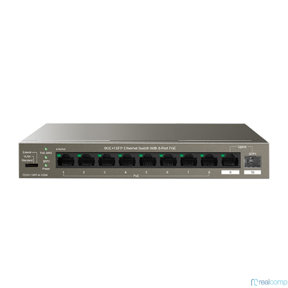 TENDA TEG1110PF-8-102W Коммутатор настольный 9-Ports 10/100/1000 Base-T + 1-Port 1000 Base-X SFP 8-Ports PoE(PoE бюджет 92W)
