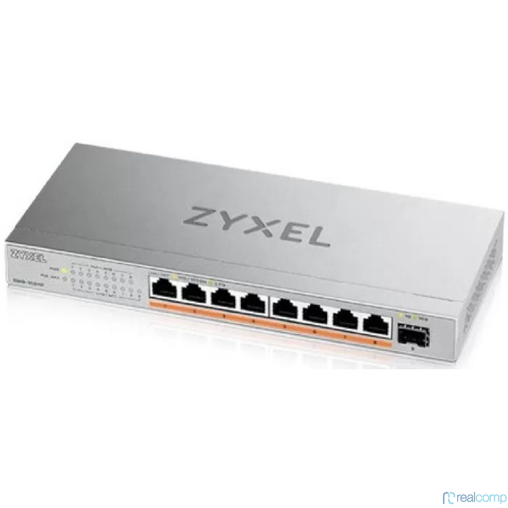 Коммутатор/ Мультигигабитный PoE++ коммутатор Zyxel XMG-108HP, 8xRJ-45: 1/2.5G PoE++, 1xSFP+, настольный, бесшумный, бюджет PoE 100 Вт