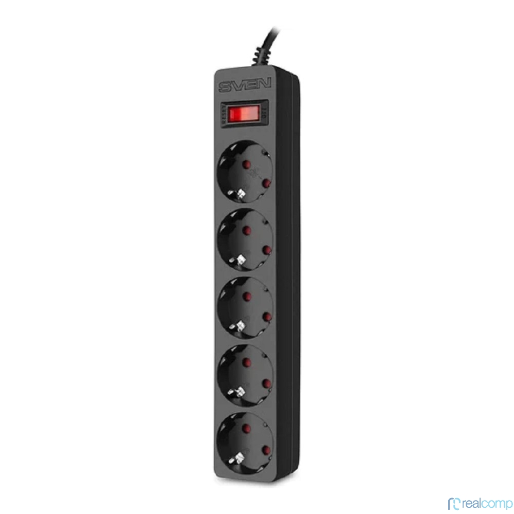 Фильтр SF-05E 1,8 м (5 розеток с защитными шторками) черный, цветная коробка