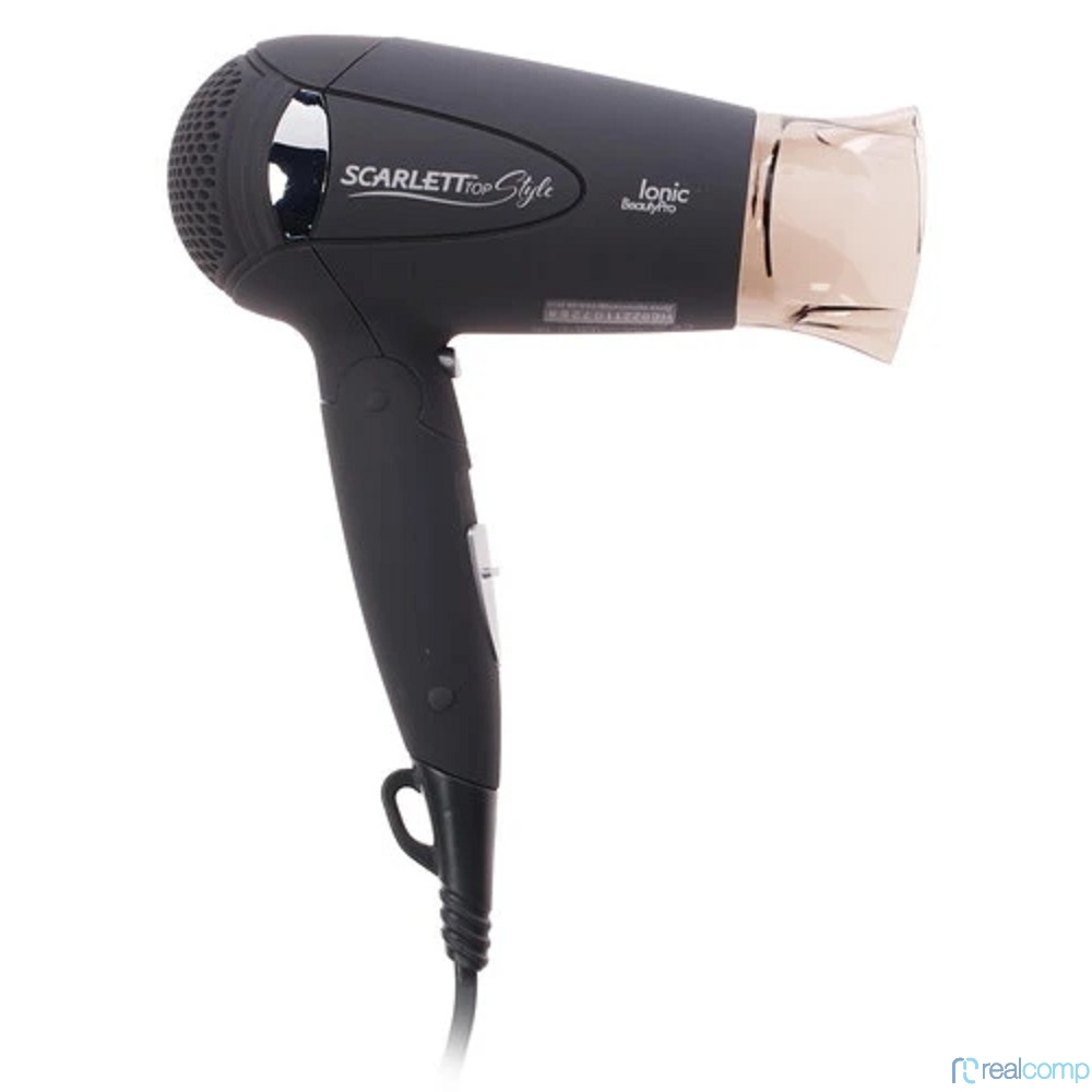 Фен, Scarlett, SC-074, Дорожный, Механическое управление, Ионизация, Складная ручка, Петля для подвешивания, Мощность 1400 Вт, Длина сетевого шнура 1.7 м, Серый