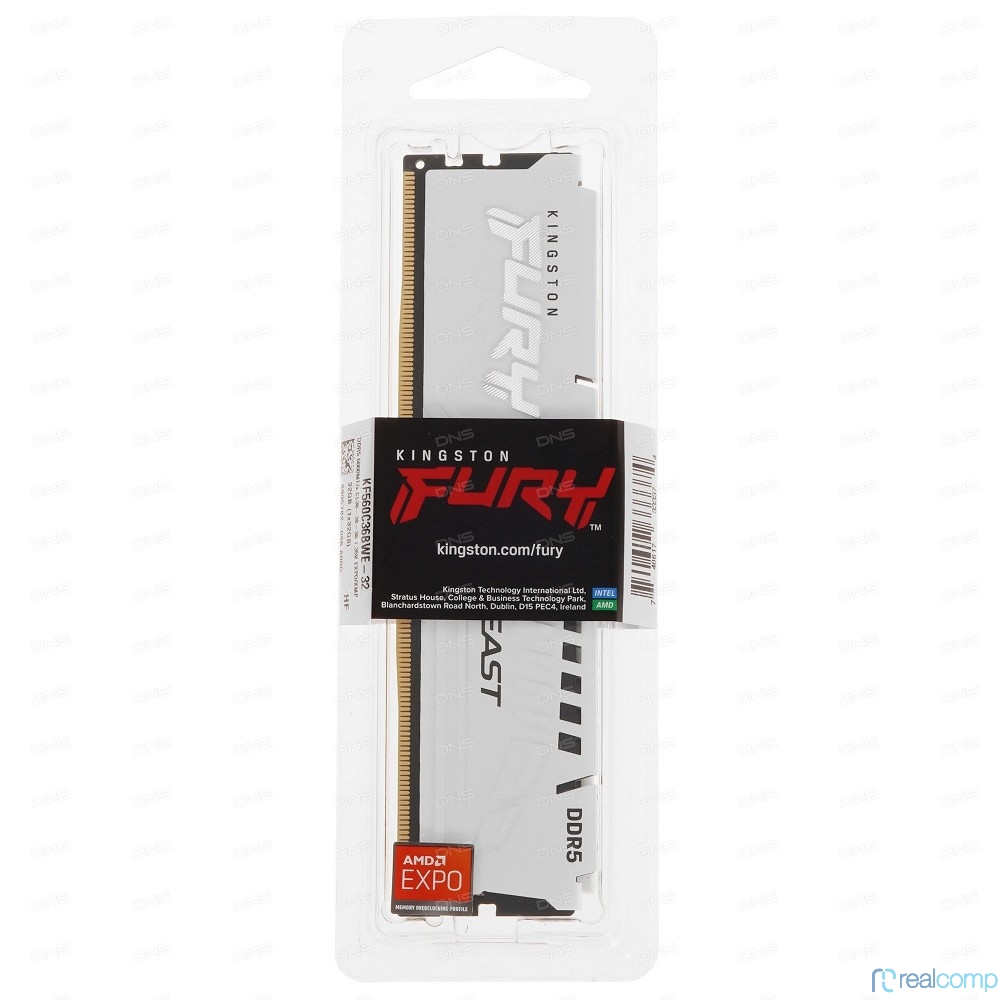 Память DDR5 32GB 6000MHz Kingston KF560C36BWE-32 Fury Beast White Expo RTL Gaming PC5-48000 CL36 DIMM 288-pin 1.35В dual rank с радиатором Ret