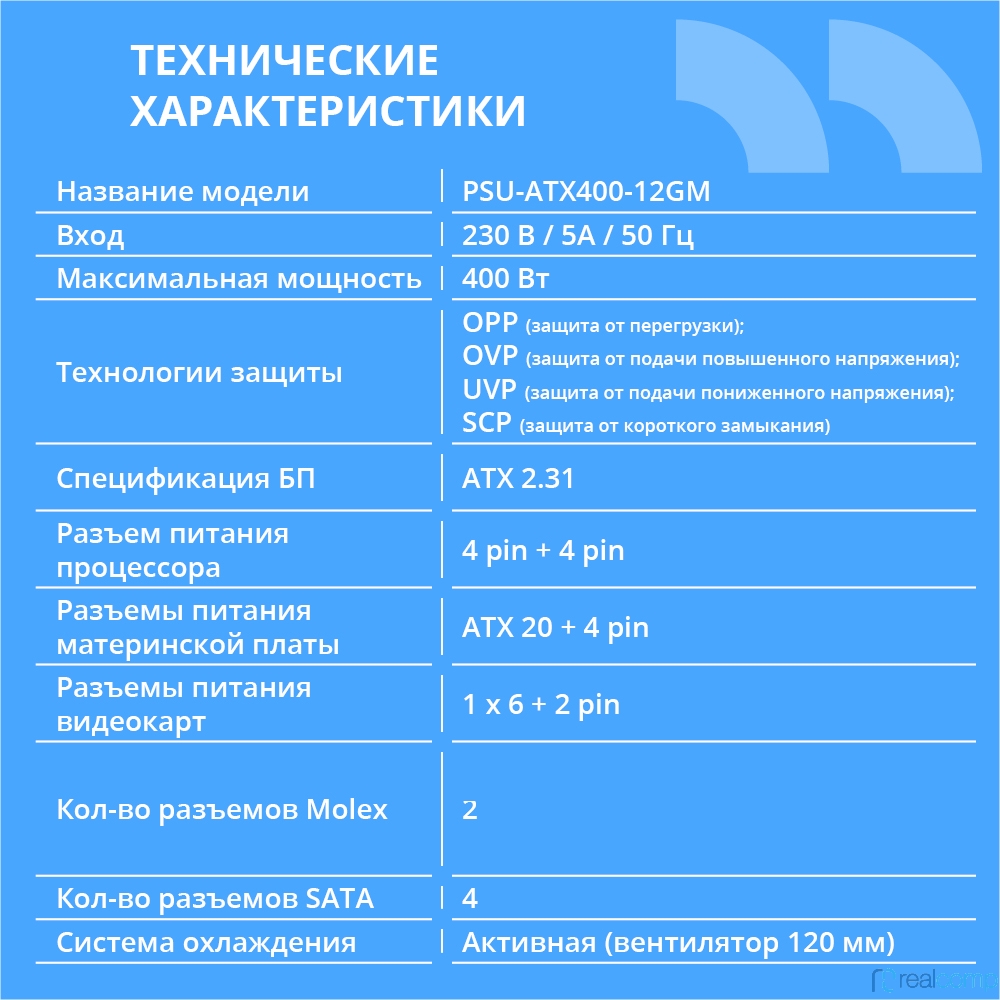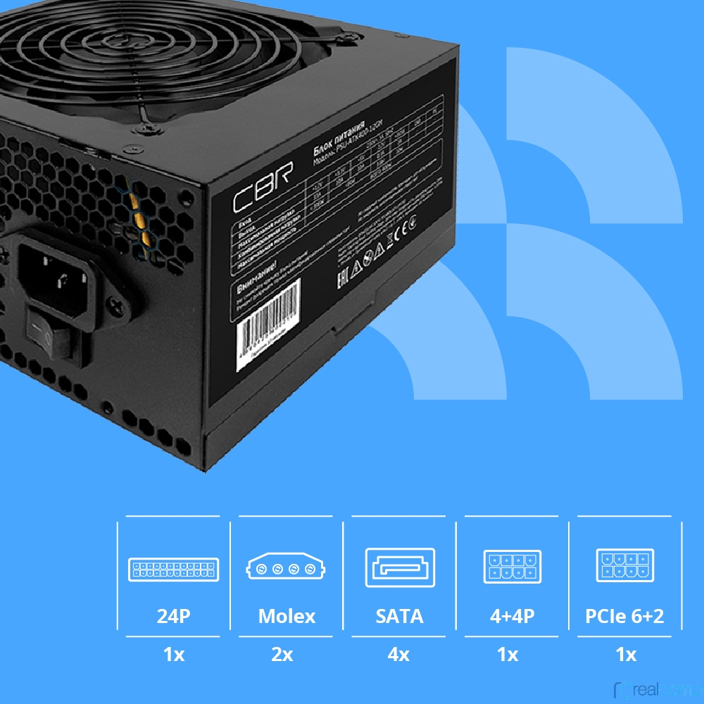 Блок питания CBR ATX 400W 80+ Bronze, DC-DC, APFC, 0.6mm, 24pin, 1*8-pin(4+4P), 1*6+2pin, 4*SATA, 2*IDE, 12cm fan, 1.5м кабель питания, черный [PSU-ATX400-12GM] BOX