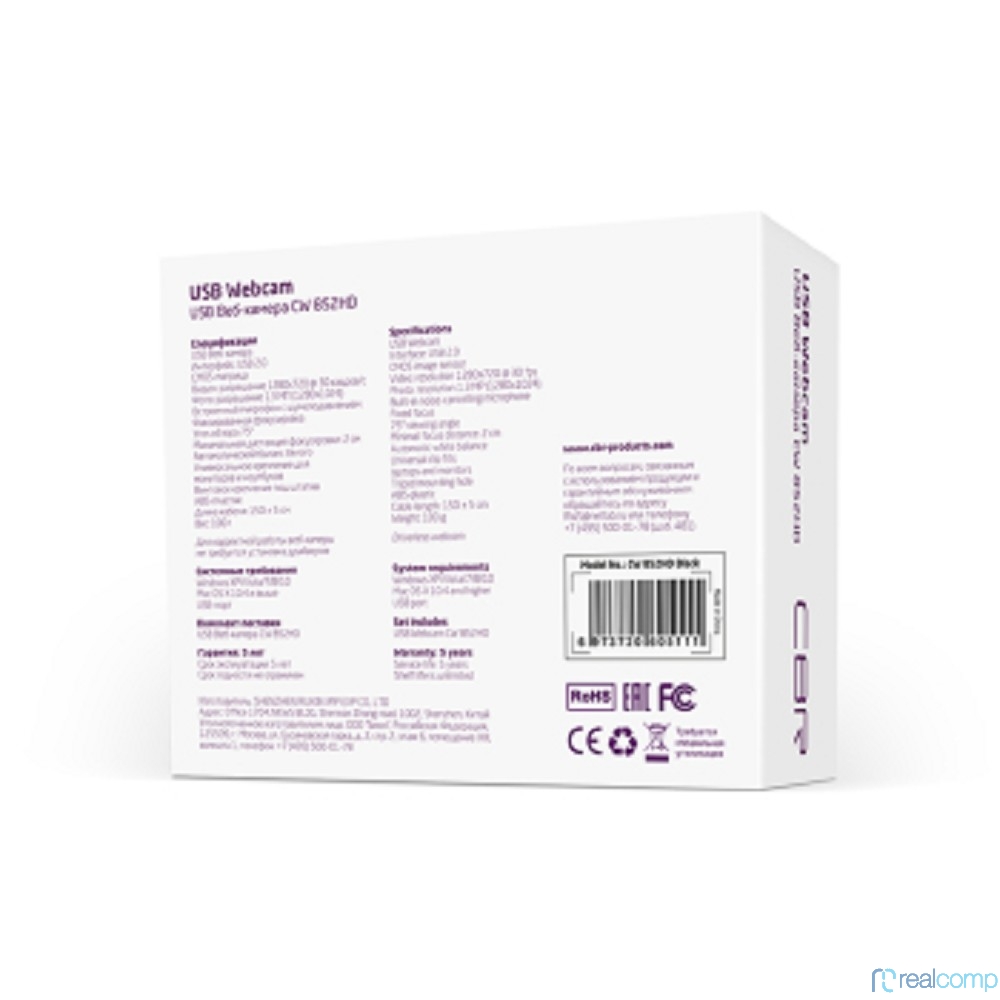 CBR CW 852HD Black, Веб-камера с матрицей 1,3 МП, разрешение видео 1280х720, USB 2.0, встроенный микрофон с шумоподавлением, фикс.фокус, крепление на мониторе, длина кабеля 1,5 м, цвет чёрный
