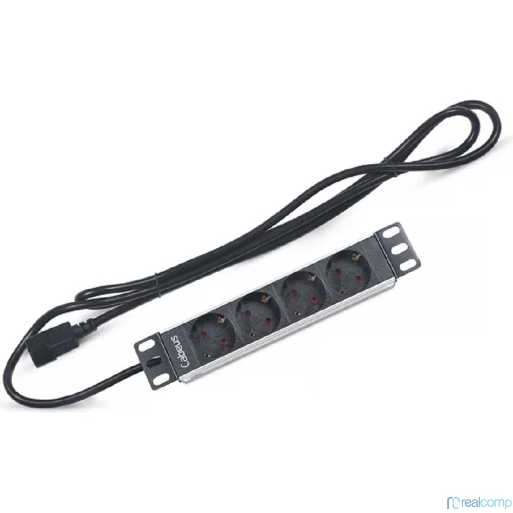 Cabeus PDU-4P-2IEC Блок евророзеток для 10" шкафов, горизонтальный, 4 розетки, 10 A, без выключателя, алюминиевый корпус, шнур 2 м, вилка IEC 320 C14