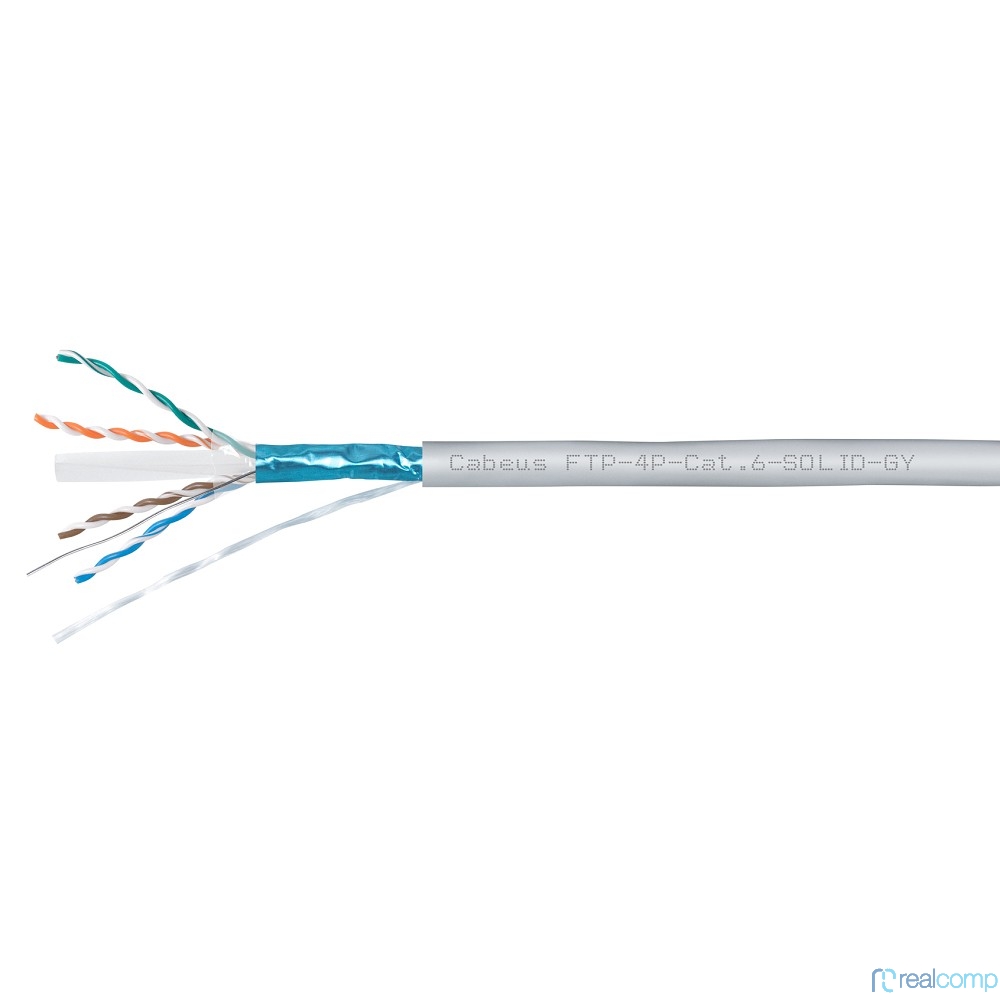 Cabeus FTP-4P-Cat.6-SOLID-GY Кабель витая пара экранированная FTP (F/UTP), категория 6, 4 пары (23 AWG), одножильный (305 м), PVC нг(А)-LS
