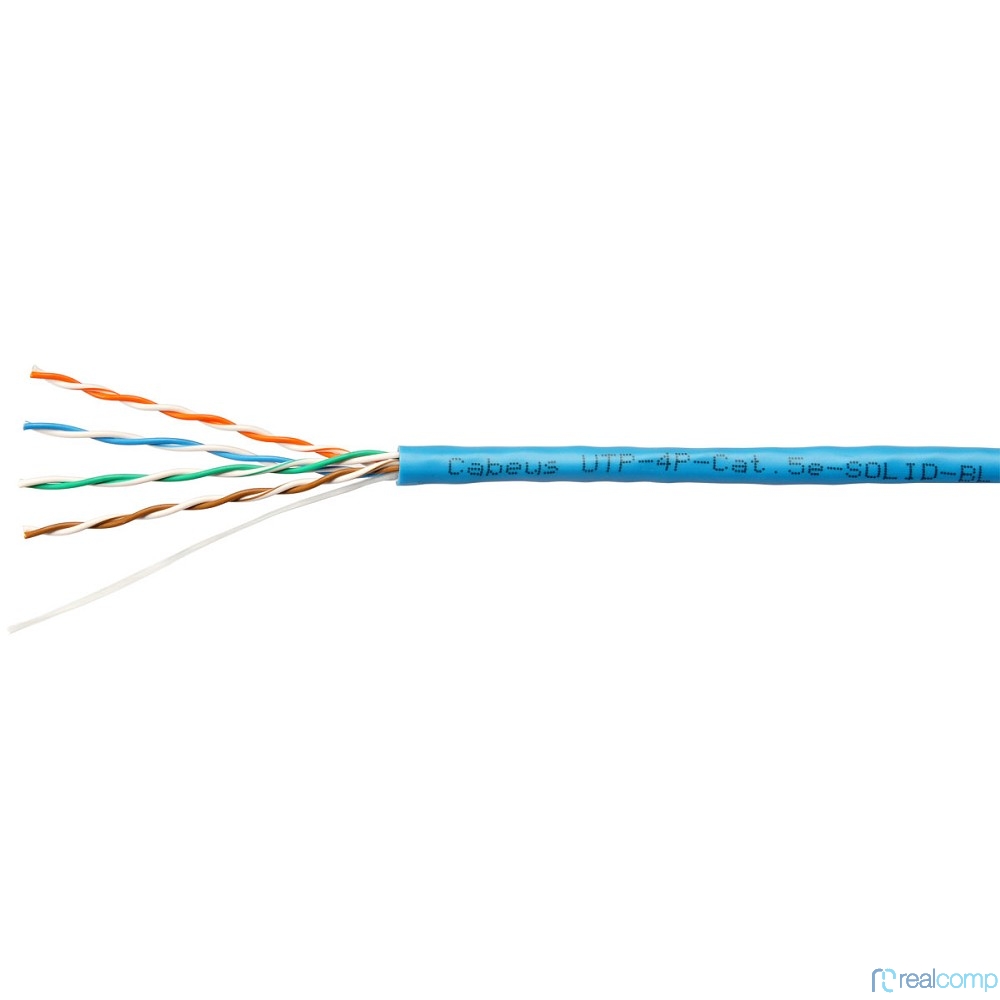Cabeus UTP-4P-Cat.5e-SOLID-BL-100 Кабель витая пара UTP (U/UTP), категория 5e, 4 пары (24 AWG), одножильный, PVC нг(А)-LS, синий (100 м)