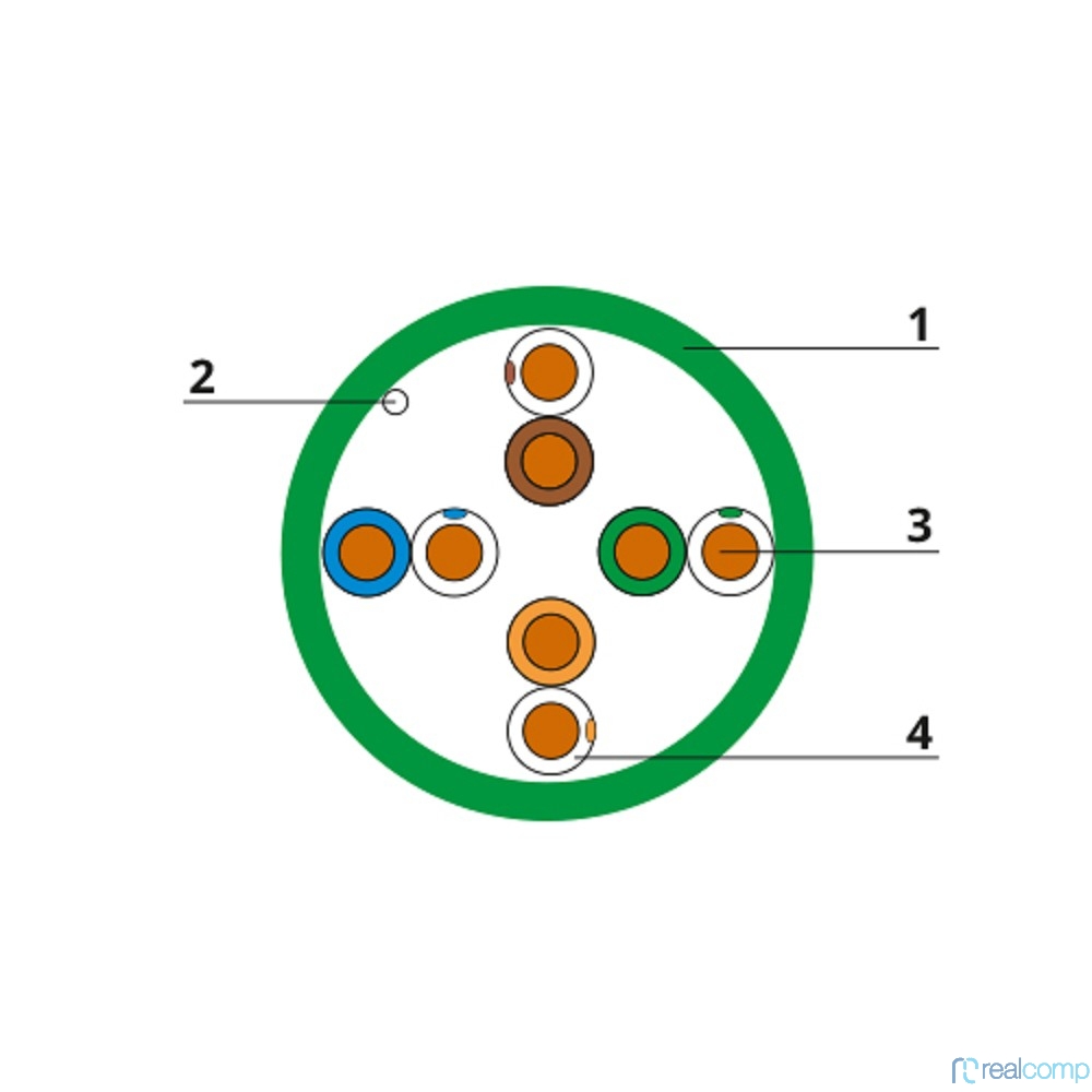 Cabeus UTP-4P-Cat.5e-SOLID-LSLTx-GN-100 Кабель витая пара UTP (U/UTP), категория 5e, 4 пары (24 AWG), одножильный, нг(А)-LSLTx, зеленый (100 м)