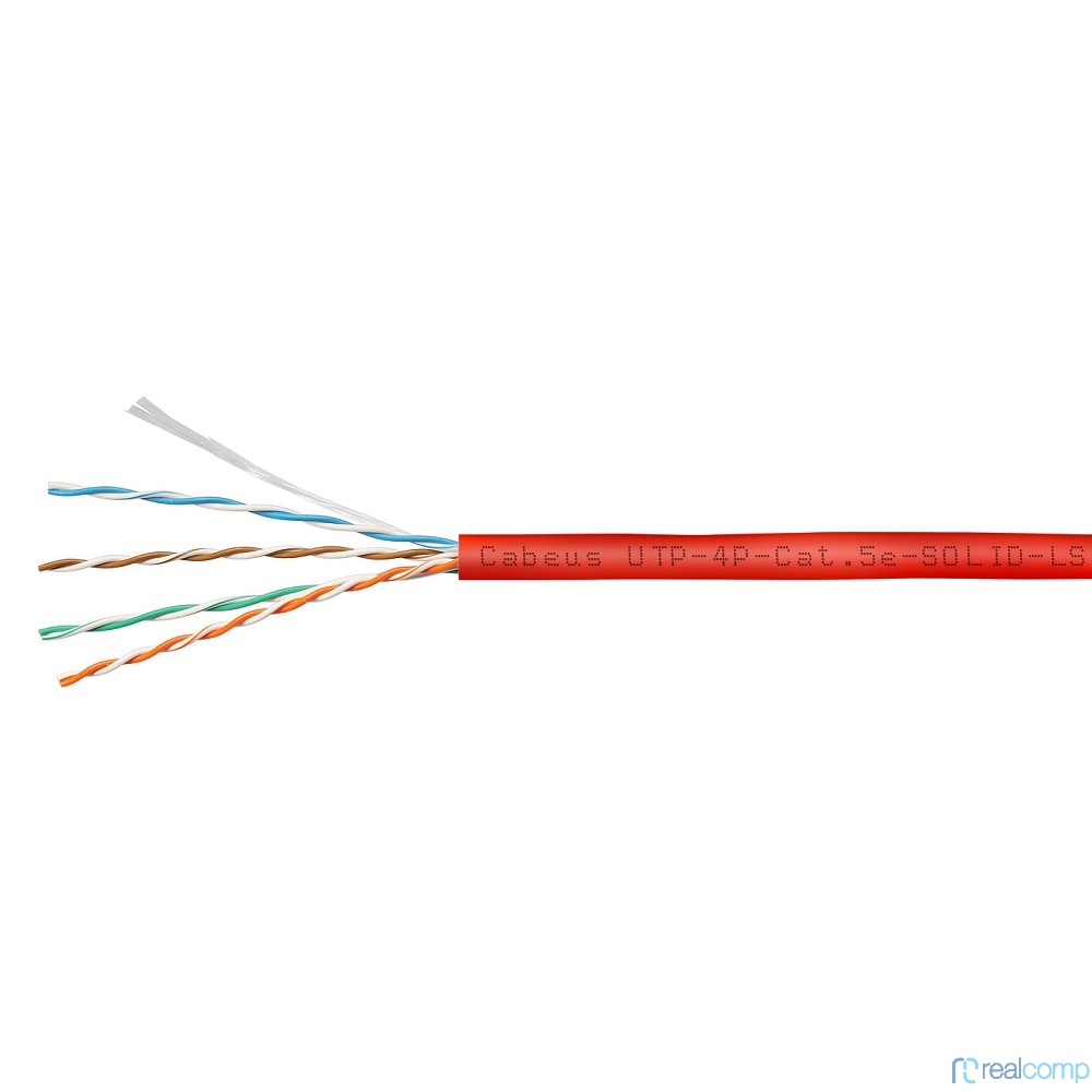 Cabeus UTP-4P-Cat.5e-SOLID-LSZH-RD Кабель витая пара UTP (U/UTP), категория 5e, 4 пары (24 AWG), одножильный, красный, LSZH, нг(А)-HF