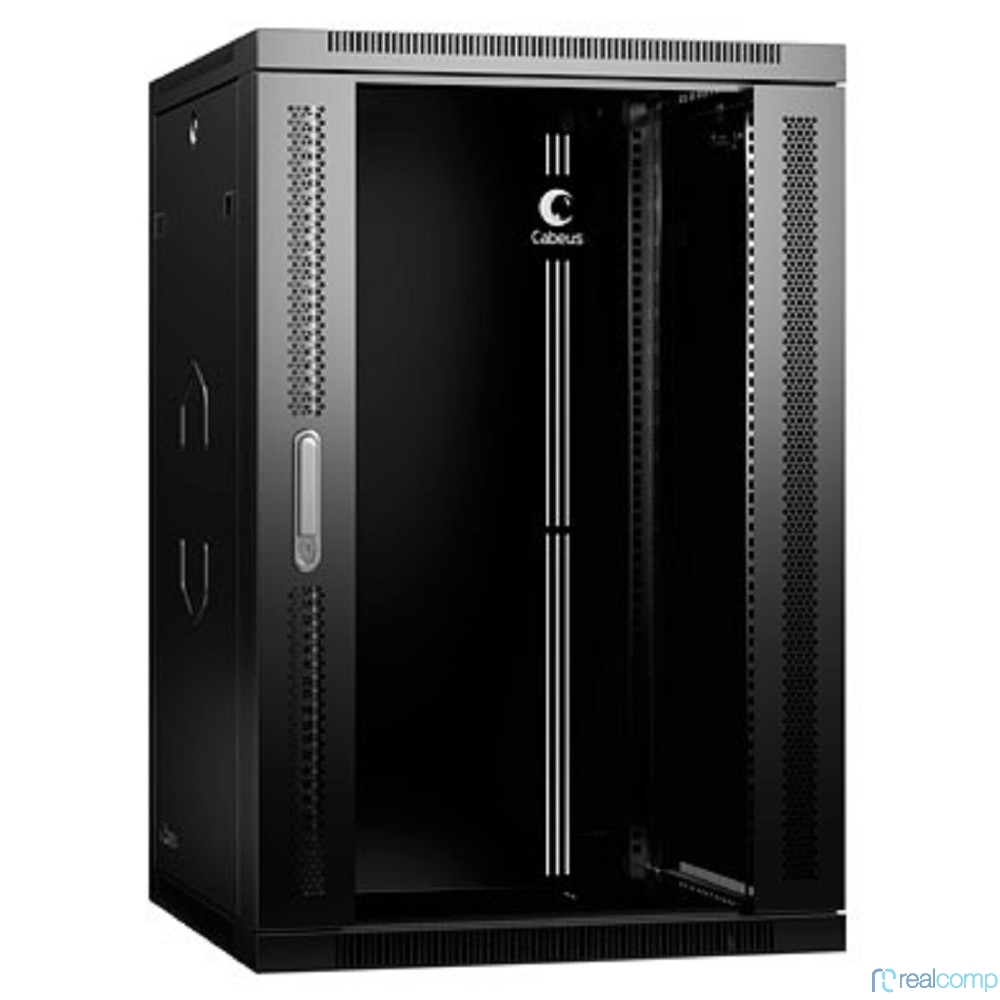 Cabeus SH-05F-18U60/35-R-BK Шкаф телекоммуникационный настенный разобранный 19" 18U 600x350x901mm (ШхГхВ) дверь стекло, цвет черный (RAL 9004)
