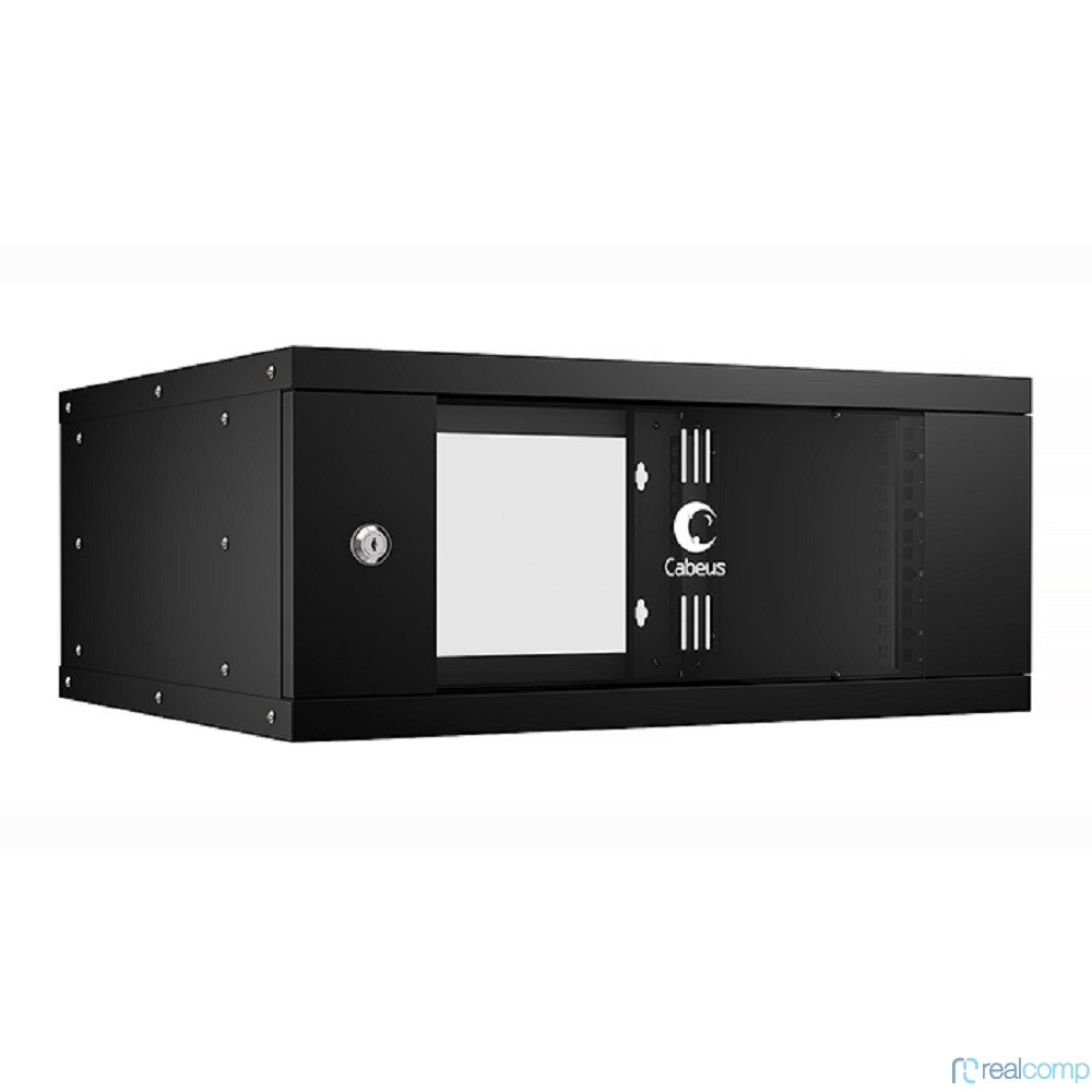 Cabeus WSC-05D-4U55/45-BK Шкаф телекоммуникационный настенный 19" 4U, серия LIGHT разборный, дверь стекло, цвет черный