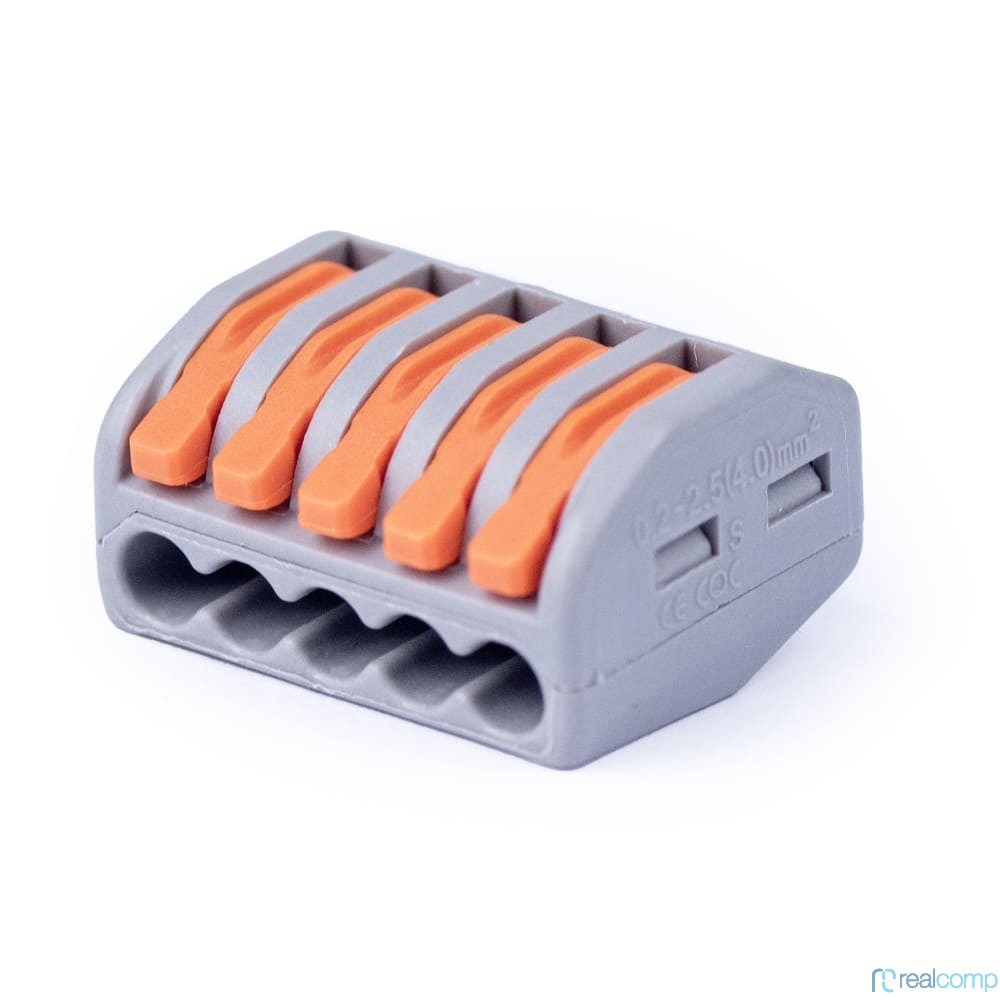Cabeus PCT-215 Клемма соединительная универсальная 5-ти проводная с рычагом 0,08-2,5/4,0 (10шт) (WAGO 222-415)