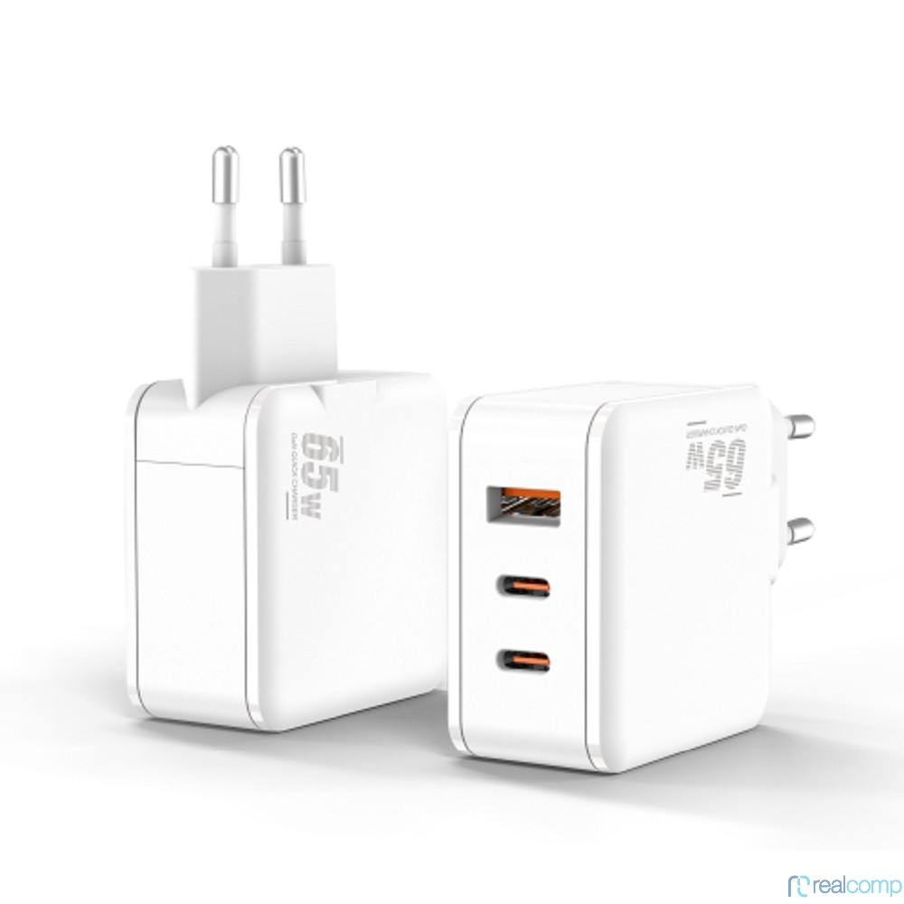 Bion Сетевое Зарядное Устройство, GaN, USB-A + 2*USB-C, PowerDelivery, 65 Вт, белый [BXP-GAN-PD-A2C-65W]