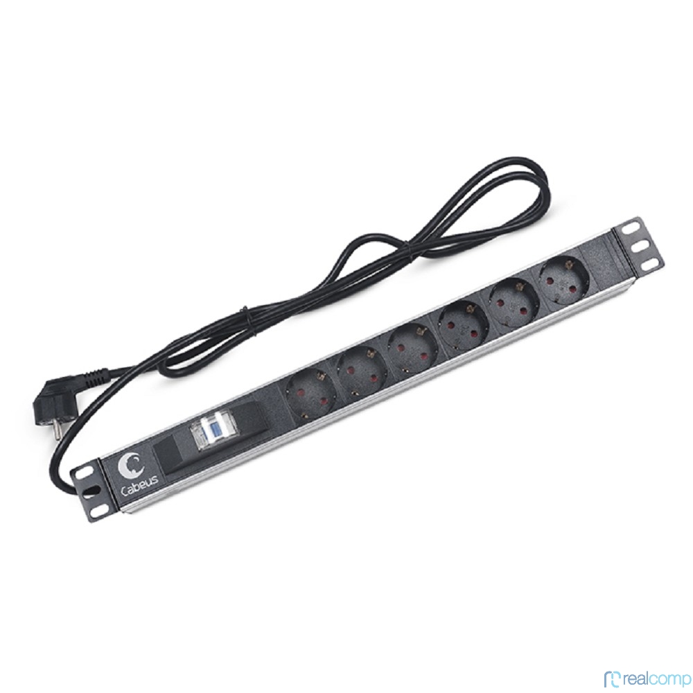 CABEUS PDU-6P-B-2EU БЛОК ЕВРОРОЗЕТОК ДЛЯ 19" ШКАФОВ, ГОРИЗОНТАЛЬНЫЙ, 6 РОЗЕТОК, АВТОМАТ ЗАЩИТЫ 16 A , ШНУР 2М, АЛЮМИНИЕВЫЙ КОРПУС, НЕМЕЦКИЙ СТАНДАРТ