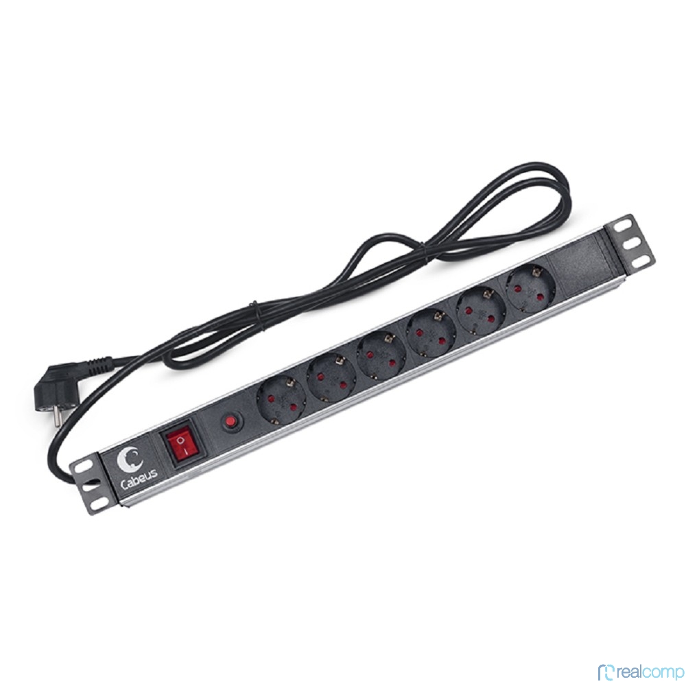 CABEUS PDU-6P-F-2EU БЛОК ЕВРОРОЗЕТОК ДЛЯ 19" ШКАФОВ, ГОРИЗОНТАЛЬНЫЙ, 6 РОЗЕТОК, ФИЛЬТР, 16 A, ВЫКЛЮЧАТЕЛЬ, ШНУР 2М, АЛЮМИНИЕВЫЙ КОРПУС, НЕМЕЦКИЙ СТАНДАРТ