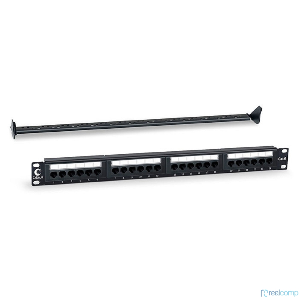 Cabeus PL-24-Cat.6-Dual IDC Патч-панель 19" (1U), 24 порта RJ-45, категория 6, Dual IDC, с задним кабельным организатором