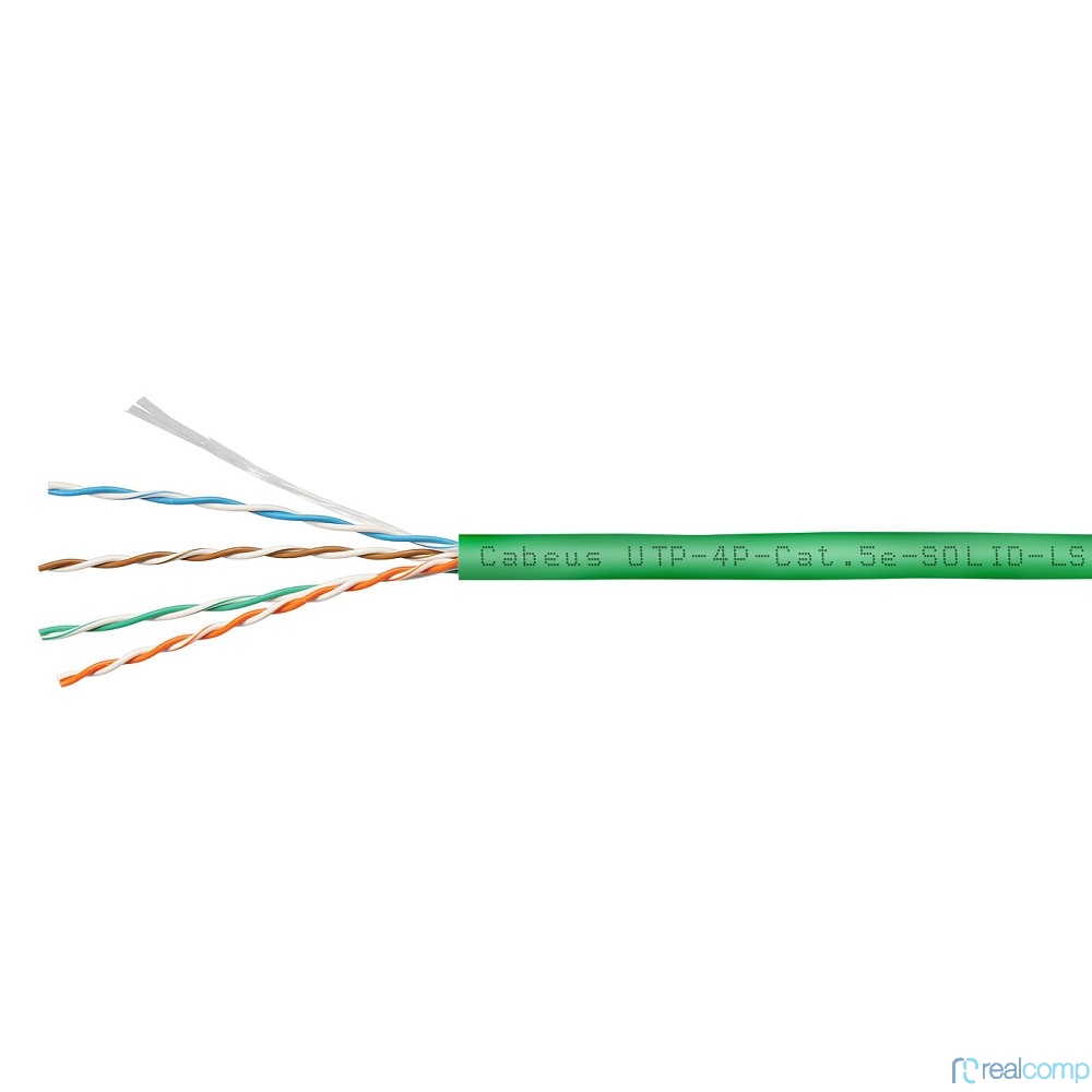 Cabeus UTP-4P-Cat.5e-SOLID-LSZH-GN Кабель витая пара UTP (U/UTP), категория 5e, 4 пары (24 AWG), одножильный, зеленый, LSZH, нг(А)-HF (305 м)
