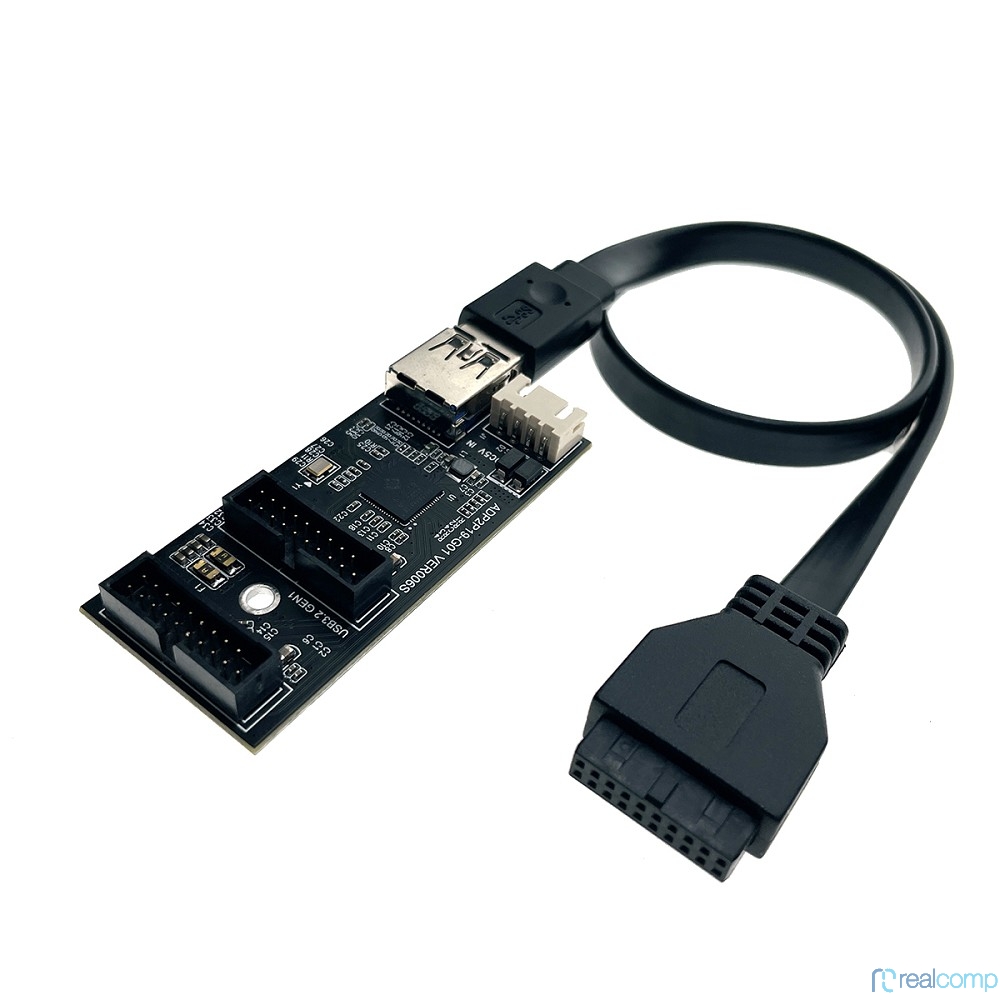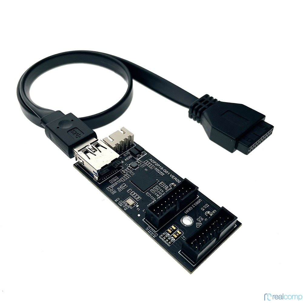 Espada Переходник разветвитель с материнской платы 20 pin на 2 х 20 Pin, чипсет GL3510, доп.питание, USB 3.2 Gen 1 (USB3.0) (EiD202M) (45947)