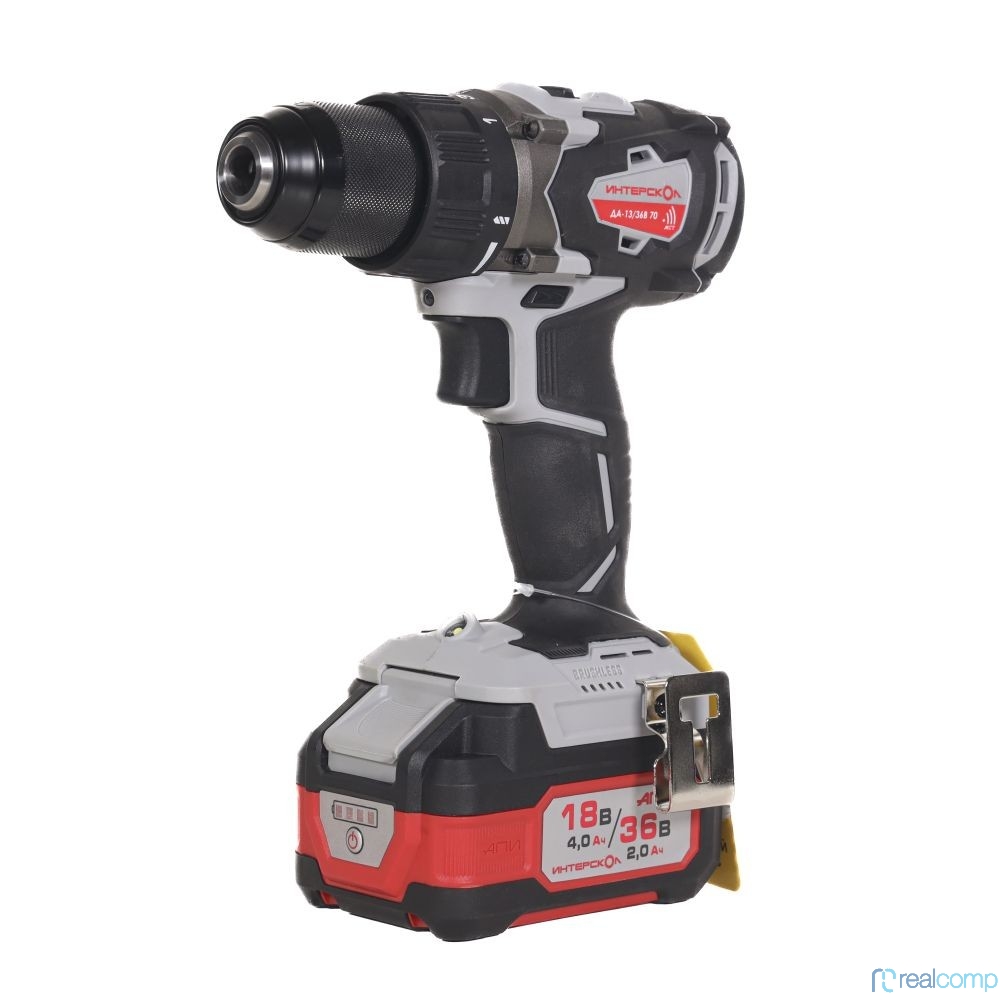 ИНТЕРСКОЛ ДА-13/36В 70 бесщеточная аккум. дрель-шуруп. Li-ion АПИ [814.2.2.70] { кейс, 2 аккум. 2,0Ач, ЗУ }