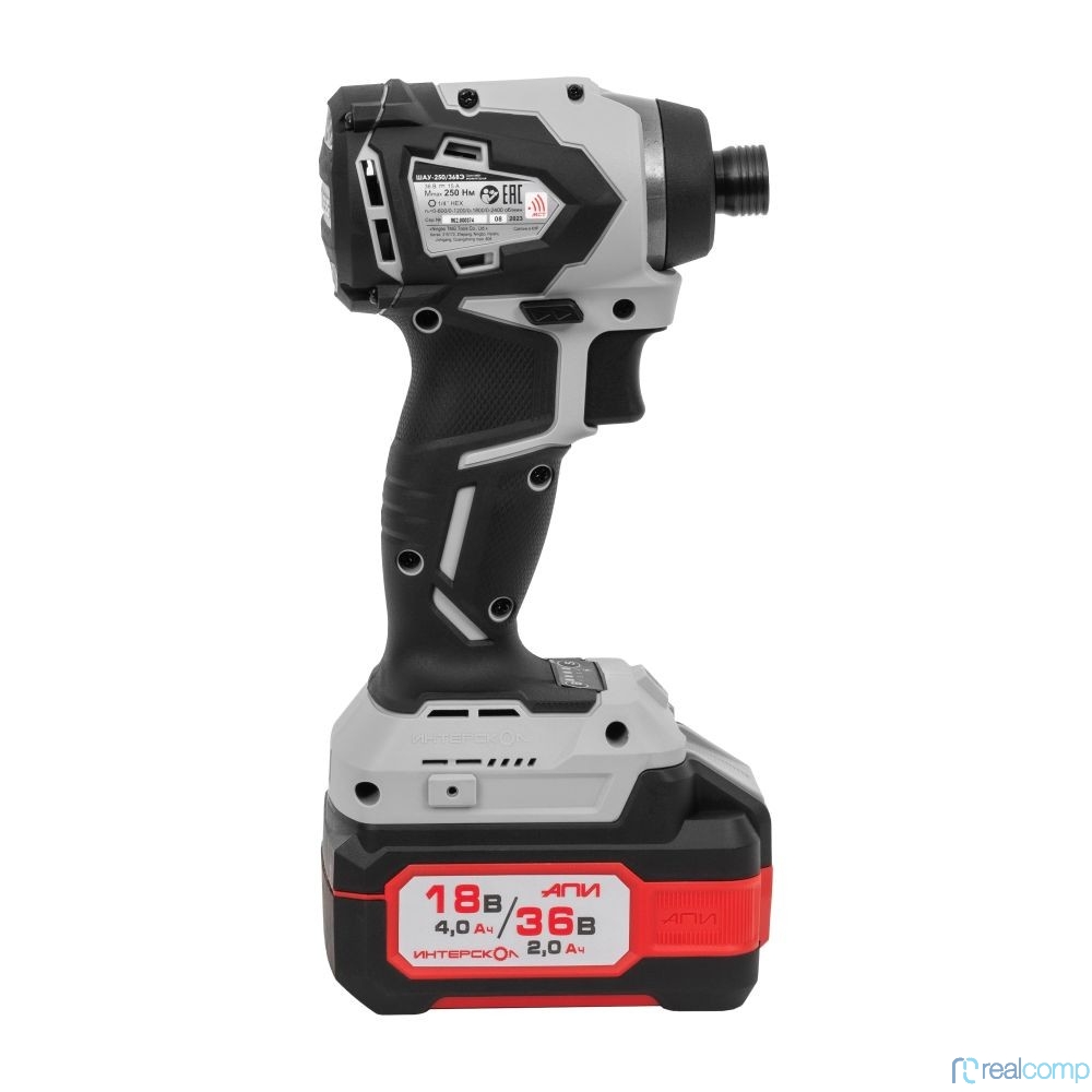 ИНТЕРСКОЛ ШАУ-250/36ВЭ бесщеточный ударн. аккум. шуруповерт Li-ion АПИ [862.2.2.70] { Li-ion, кейс,2 аккум. 2,0Ач, ЗУ }