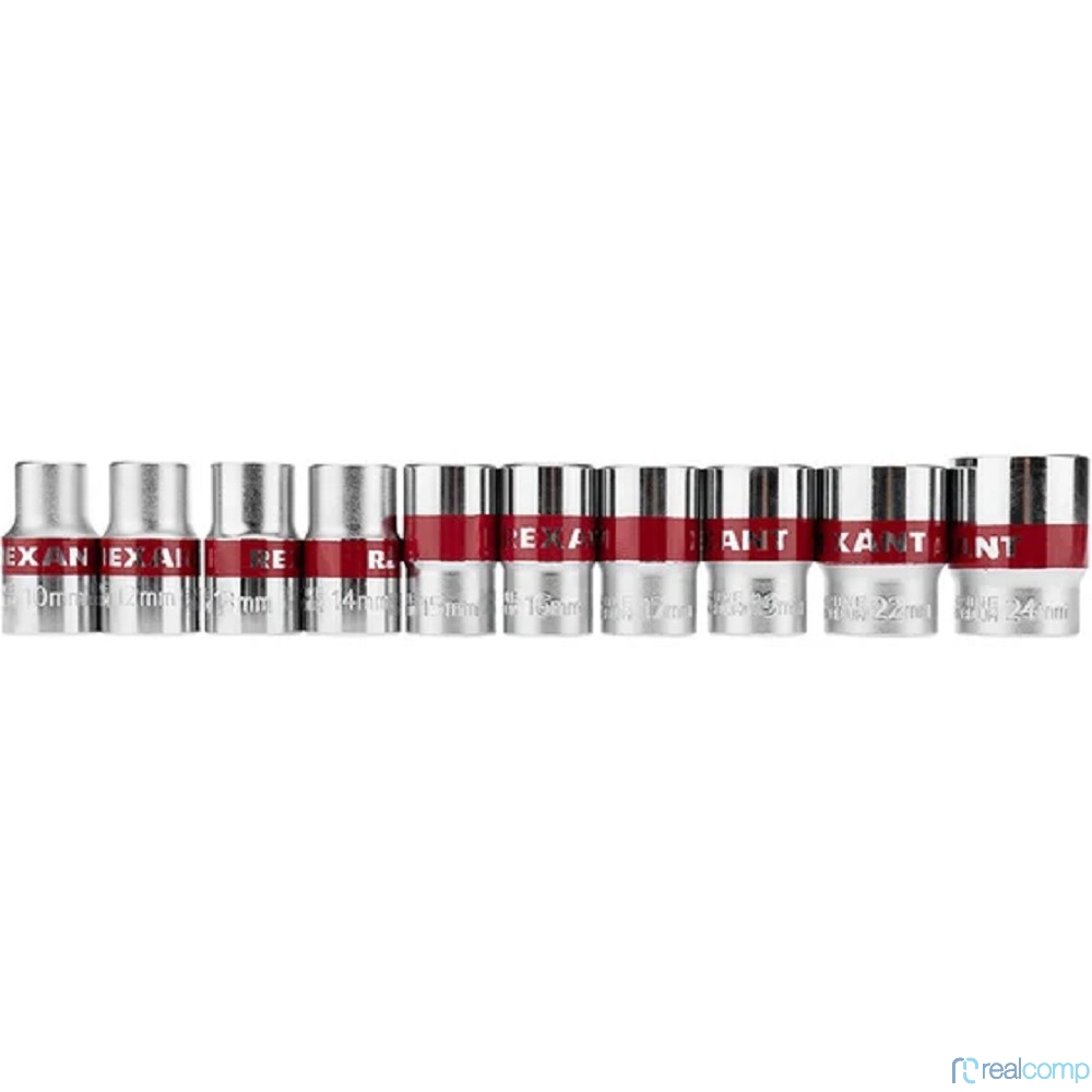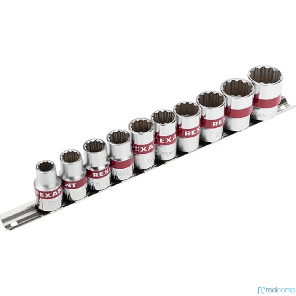 Rexant (12-8304) Набор торцевых головок 1/2, двенадцатигранные, CrV, 10 шт., 10-24мм