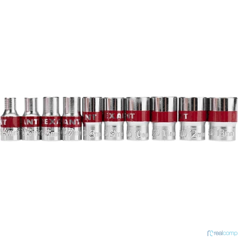 Rexant (12-8316) Набор торцевых головок 1/4, шестигранные, CrV, 10 шт., 4-13мм
