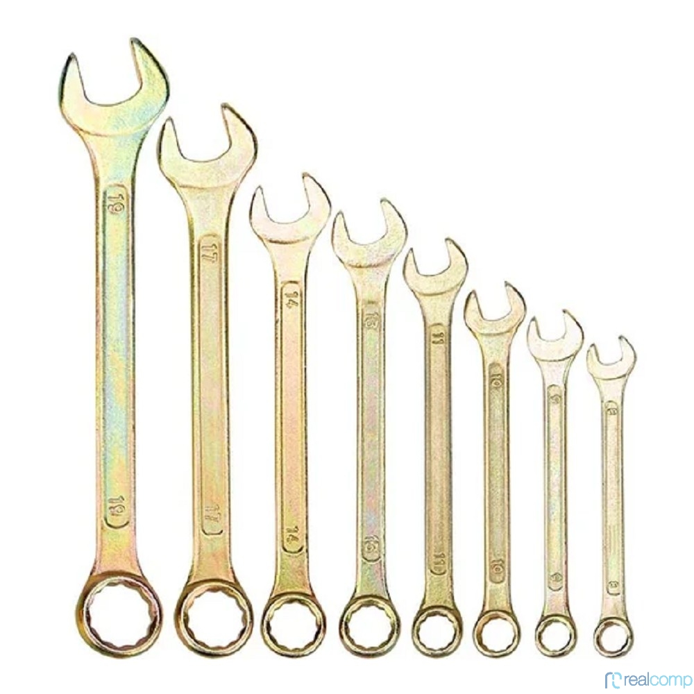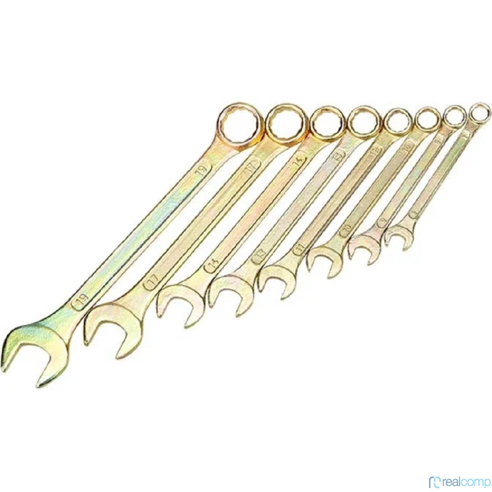 Rexant (12-5842-2) Набор ключей комбинированных (8-11, 13, 14, 17, 19мм), 8 шт, желтый цинк