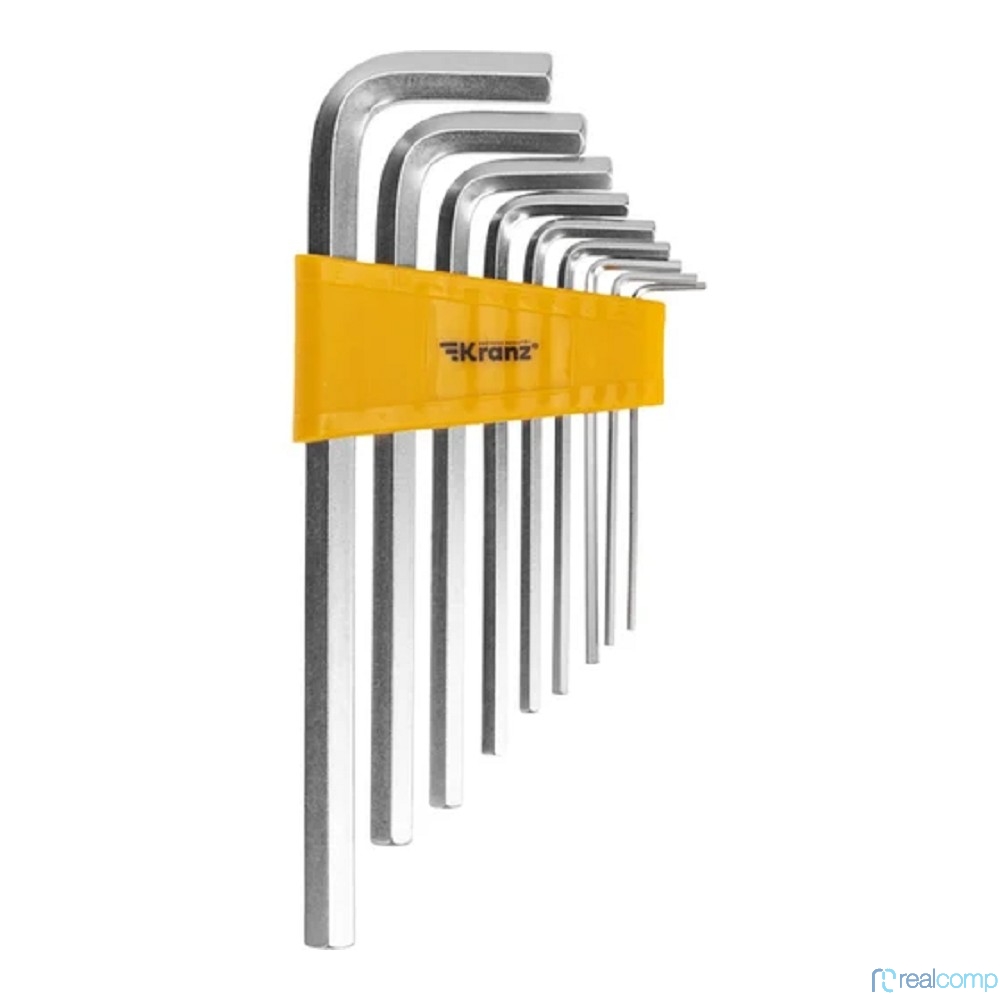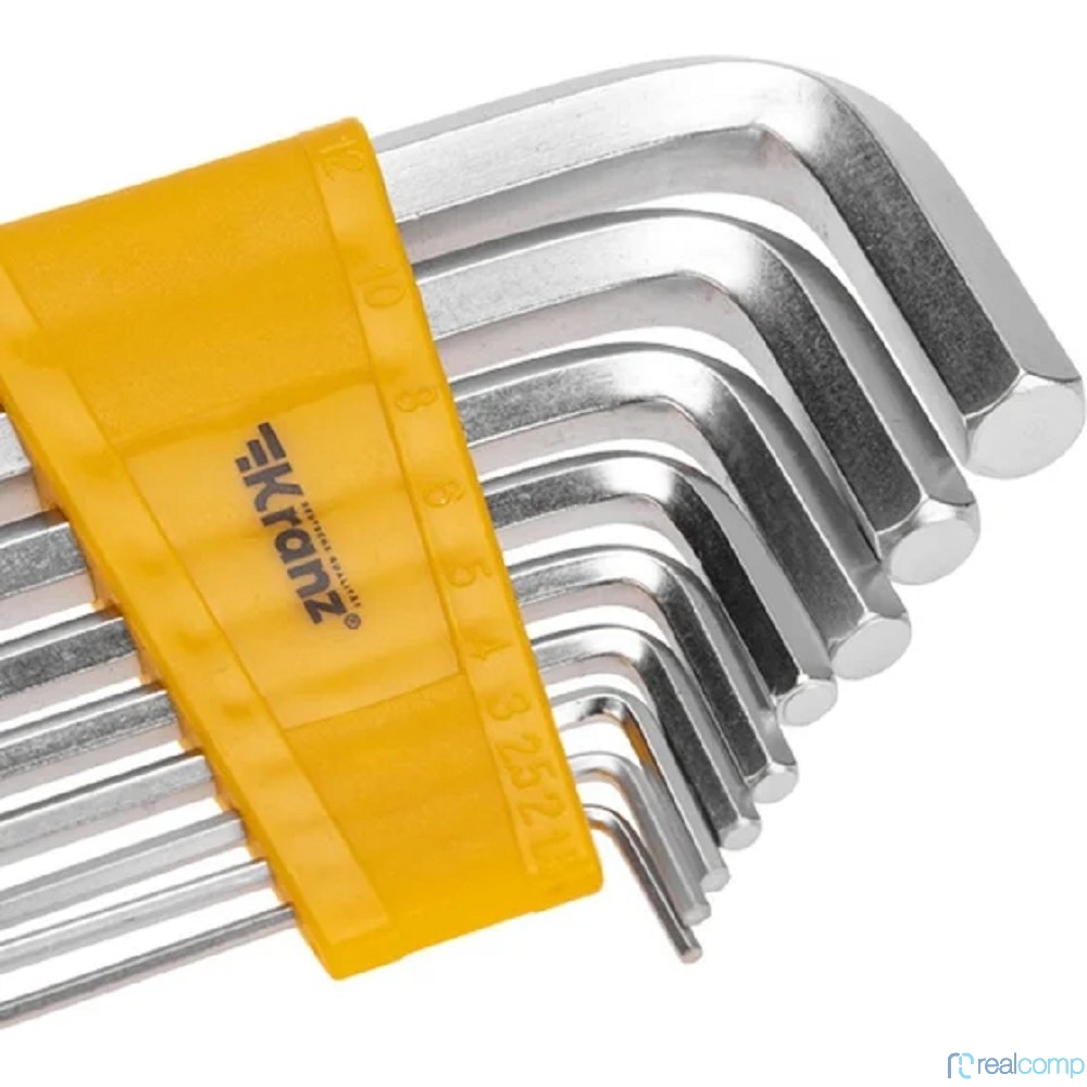 Kranz (KR-12-5213) Набор ключей имбусовых HEX 2,0-12 мм, CrV, 9 шт., удлиненные