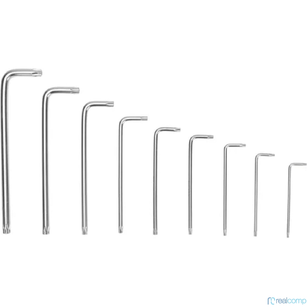 Kranz (KR-12-5221) Набор ключей имбусовых Tamper-Torx 9 шт., ТТ10-ТТ50, закаленные, удлиненные, никель