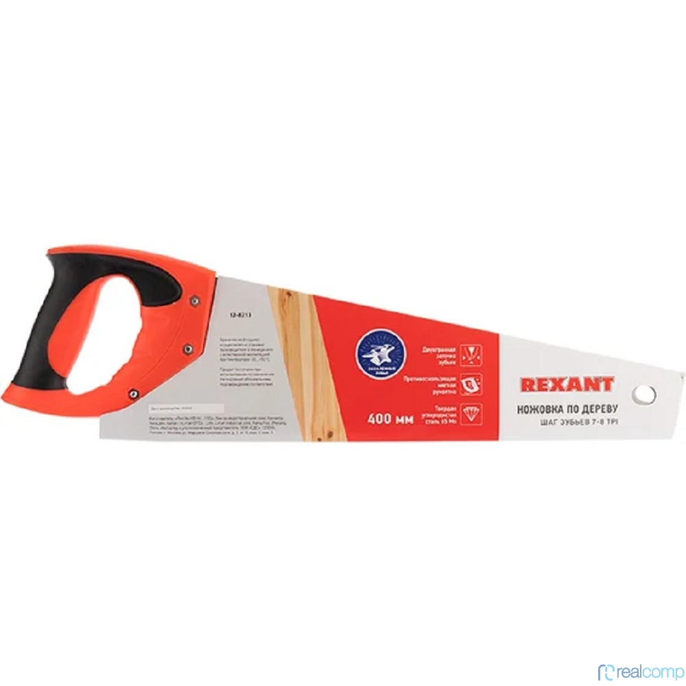 Rexant (12-8213) Ножовка по дереву Зубец 400мм, 7-8 TPI, каленый зуб 2D, двухкомпонентная рукоятка