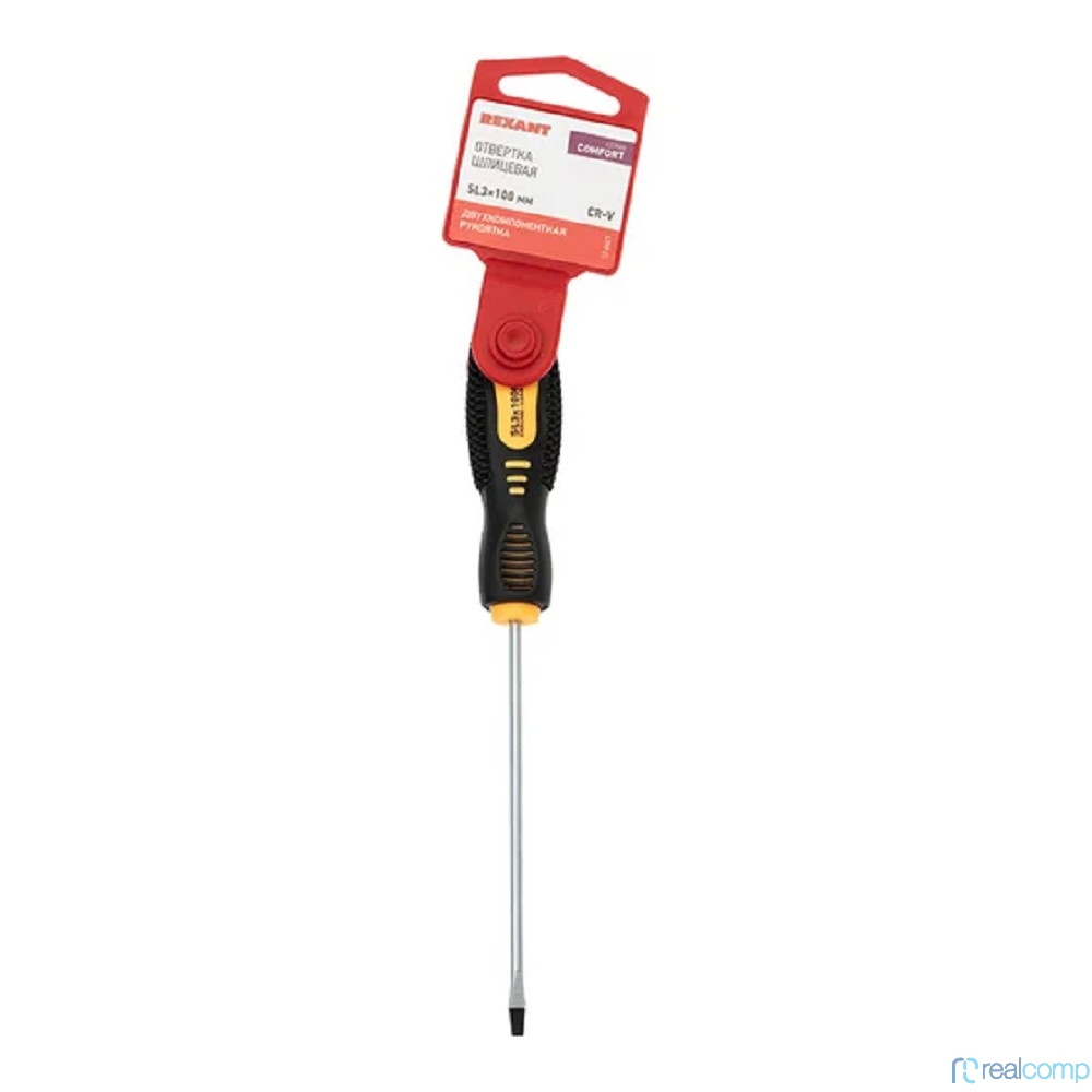 Rexant (12-6421) Отвертка шлицевая SL3x100mm, двухкомпонентная рукоятка