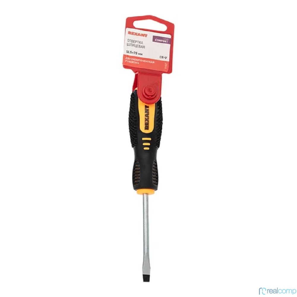 Rexant (12-6427) Отвертка шлицевая SL5x75mm, двухкомпонентная рукоятка