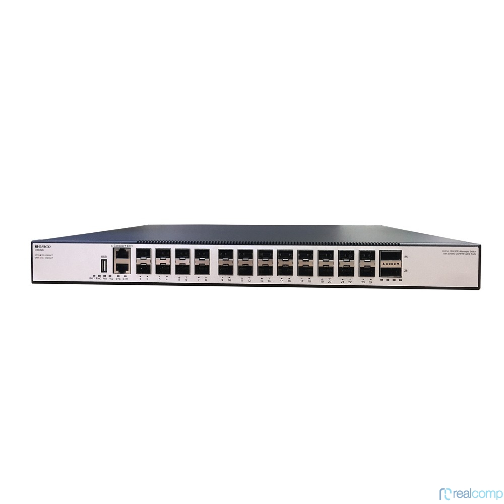 ORIGO OS6226/A1A Управляемый L3 стекируемый коммутатор, 24x10GBase-X SFP+, 2x100GBase-X QSFP28, консольный порт RJ-45, комплект для установки в 19" стойку