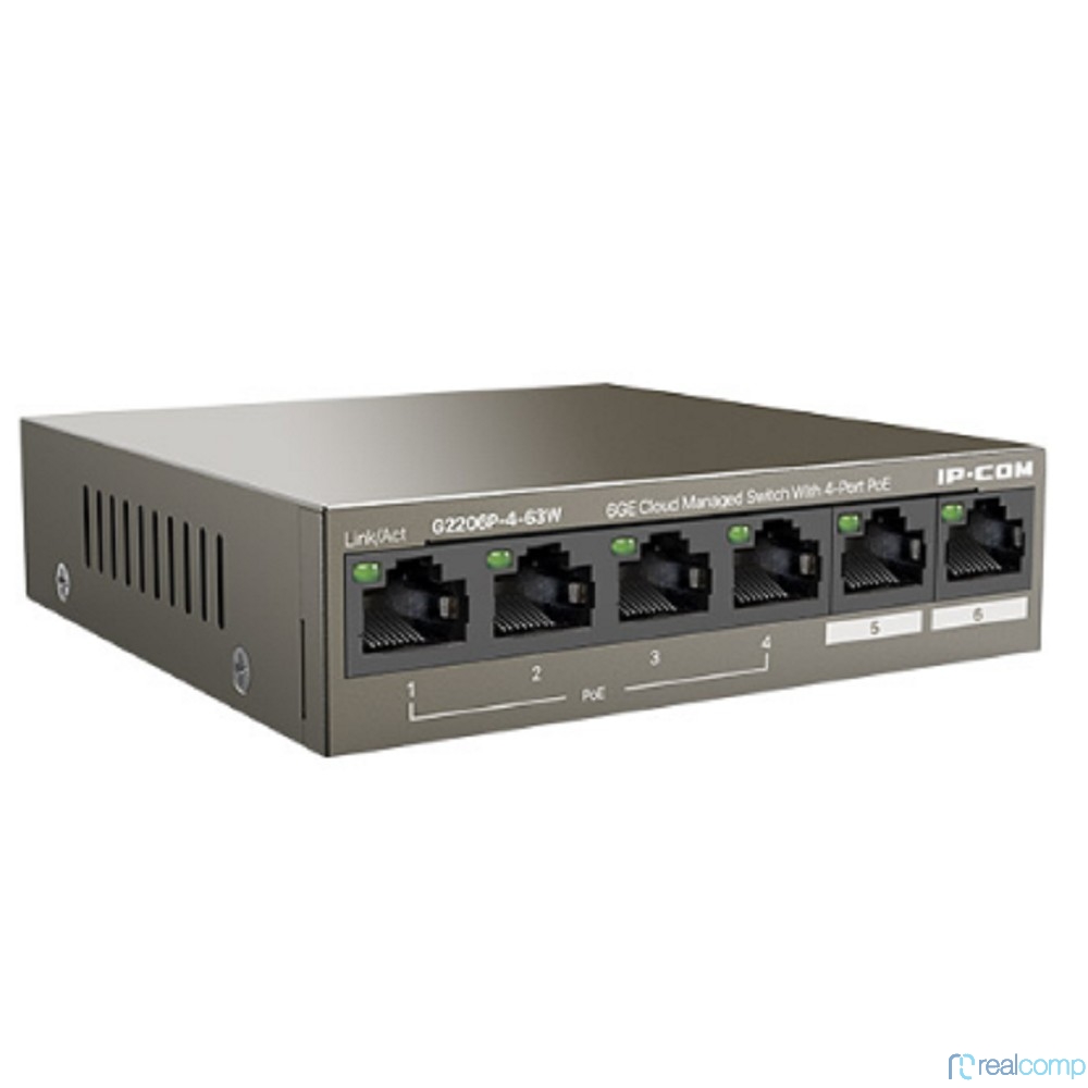 IP-COM G2206P-4-63W Коммутатор PoE управляемый 6-Ports 10/100/1000 Base-T + 2-Ports 1000 Base-X SFP (2-Ports uplink) / 4-Ports PoE (PoE бюджет 58W)